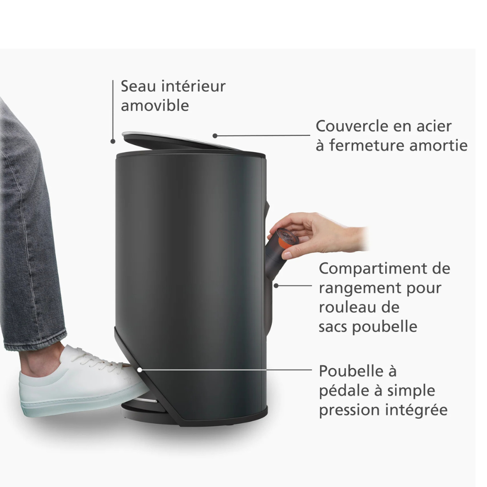 - Grande pédale facile à presser qui s’intègre parfaitement dans l’encombrement de la poubelle.