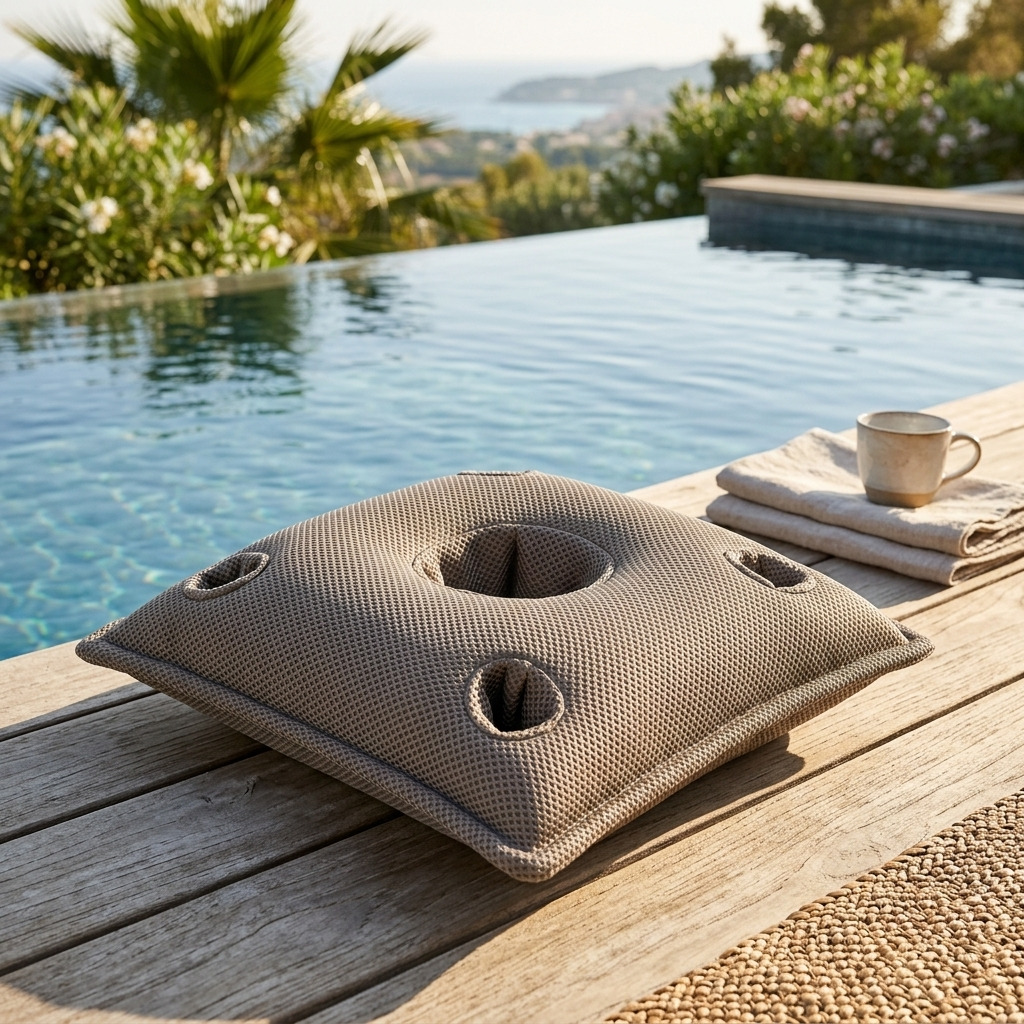 Parfait comme accessoire de piscine, pour la terrasse ou le jardin, ce coussin extérieur flottant permet de garder vos boissons à portée de main tout en profitant de l’eau et du soleil.