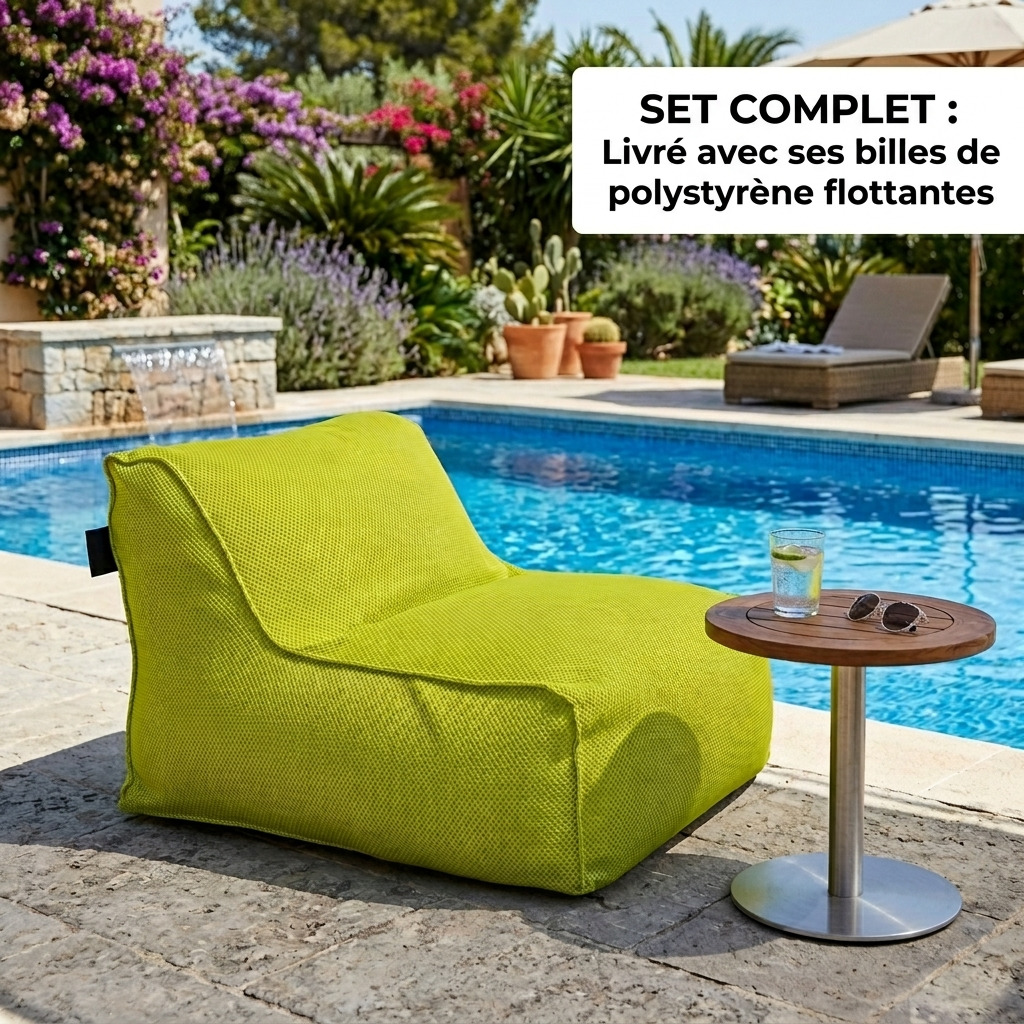 Fauteuil piscine XL flottant 100x90 cm vert – billes incluses (à remplir) – intérieur / extérieur (DC10090-1-SET)