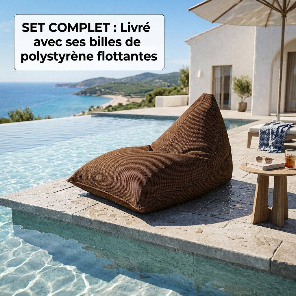 - Lazy Bro fauteuil poire 140 x 120 x 90cm intérieur & extérieur flottant, déhoussable et résistant aux UV, Brun (LBF140120-5)