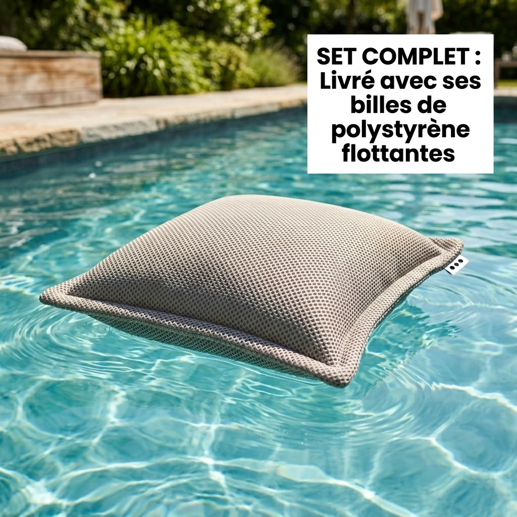 Coussin piscine flottant 45x45 cm gris – billes incluses (à remplir) – intérieur / extérieur (SCF4545-1-SET)