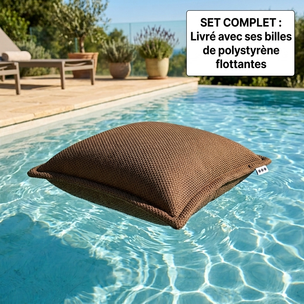 Coussin piscine flottant 45x45 cm brun – billes incluses (à remplir) – intérieur / extérieur (SCF4545-5-SET)