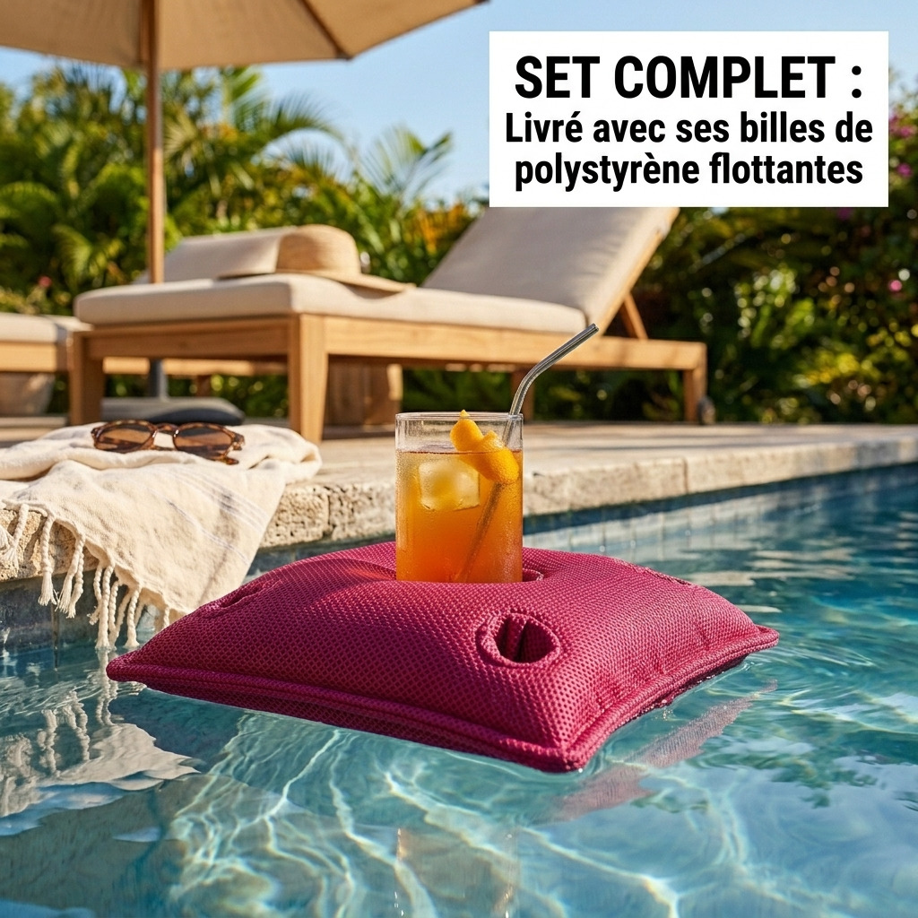 Envie de profiter du soleil sans bouger de chez vous ? Ce coussin flottant porte-verres crée facilement un espace détente au bord de la piscine, sur la terrasse ou dans le jardin.