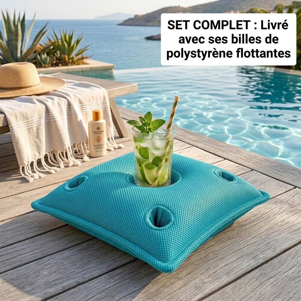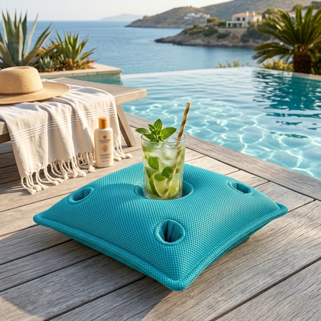 Envie de profiter du soleil sans bouger de chez vous ? Ce coussin flottant porte-verres crée facilement un espace détente au bord de la piscine, sur la terrasse ou dans le jardin.