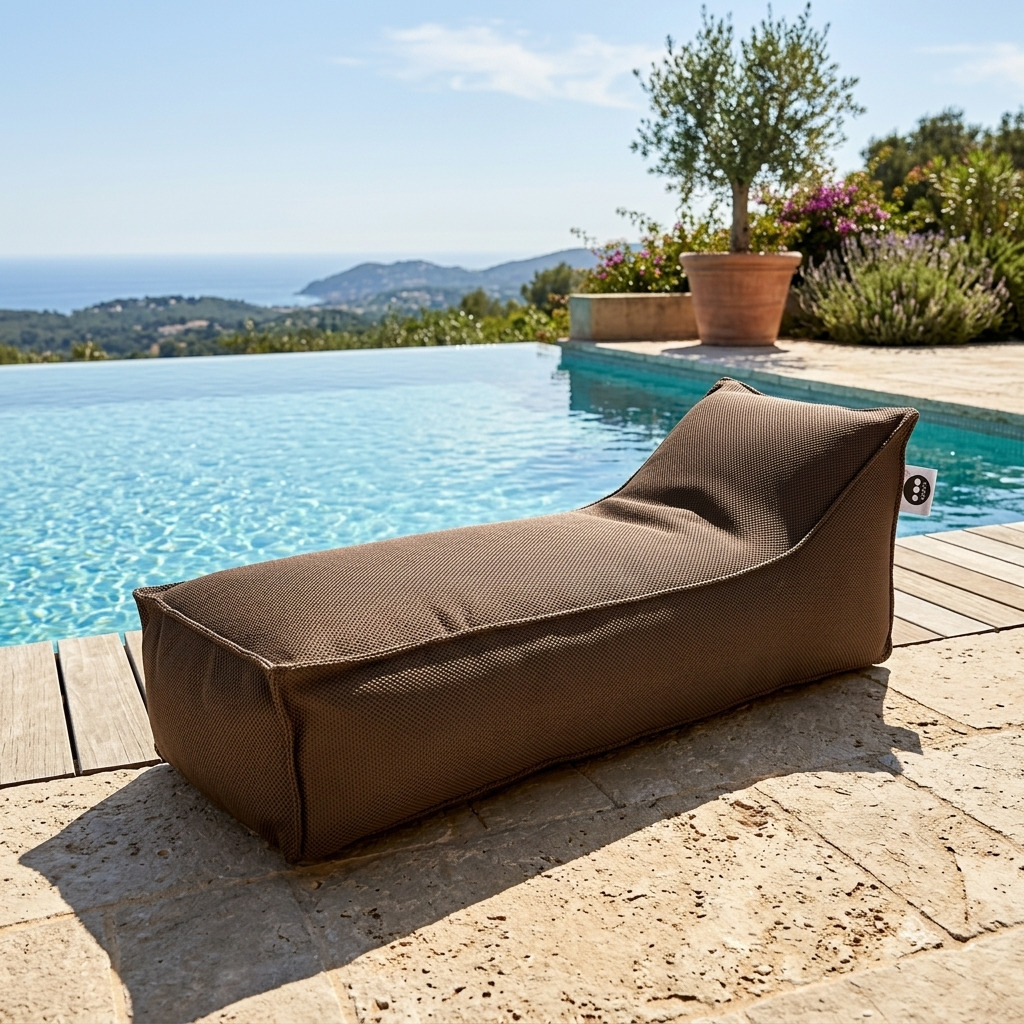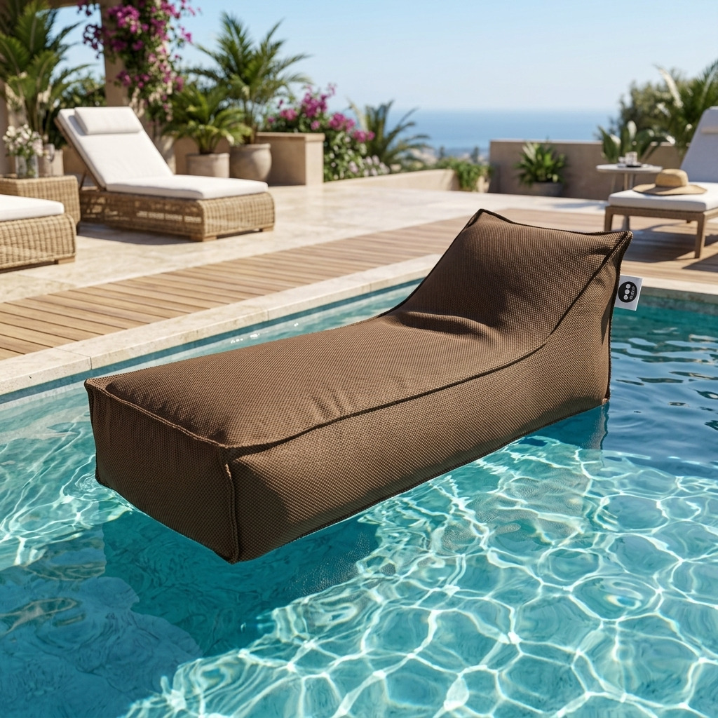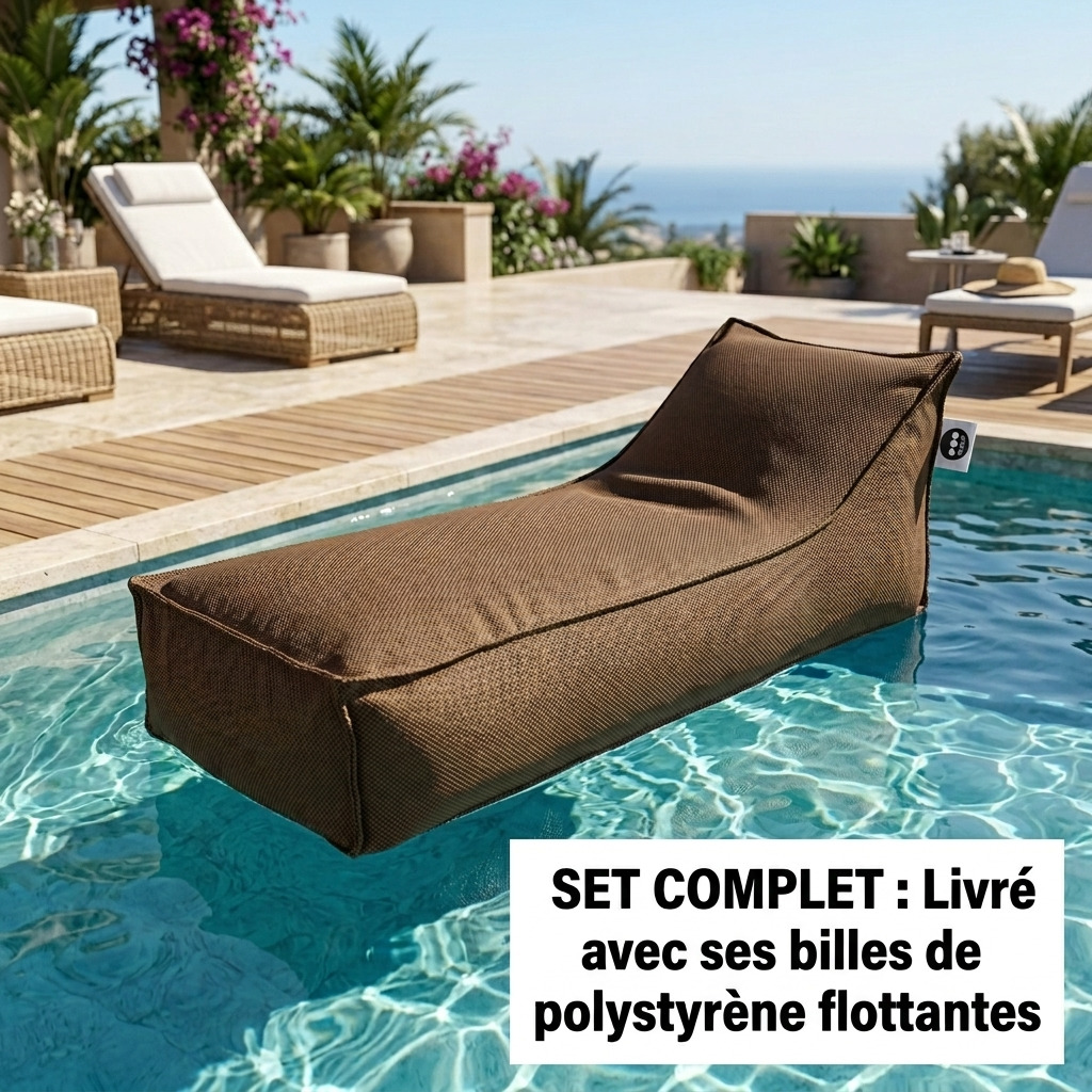 Chaise longue piscine flottante 160 × 70 × 35 cm intérieur / extérieur AVEC billes de polystyrène (à remplir) – Brun (RSF16070-5-SET)