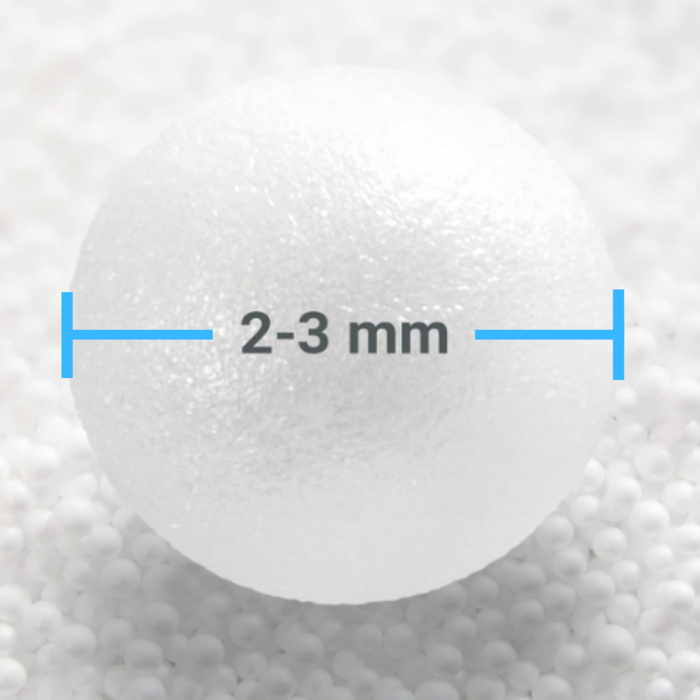 Caractéristiques des perles de Polystyrène 150L, Perle BS pour Remplissage de Pouf, Coussin, Peluche, non hydrophile et anti-feu (PERLEIGNI150):