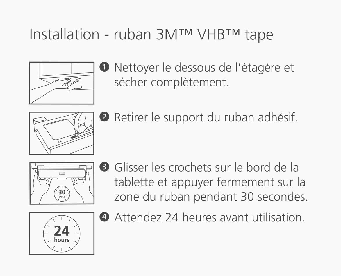 - Installation facile sans outil à l'aide de ruban adhésif fort 3M™ VHB™