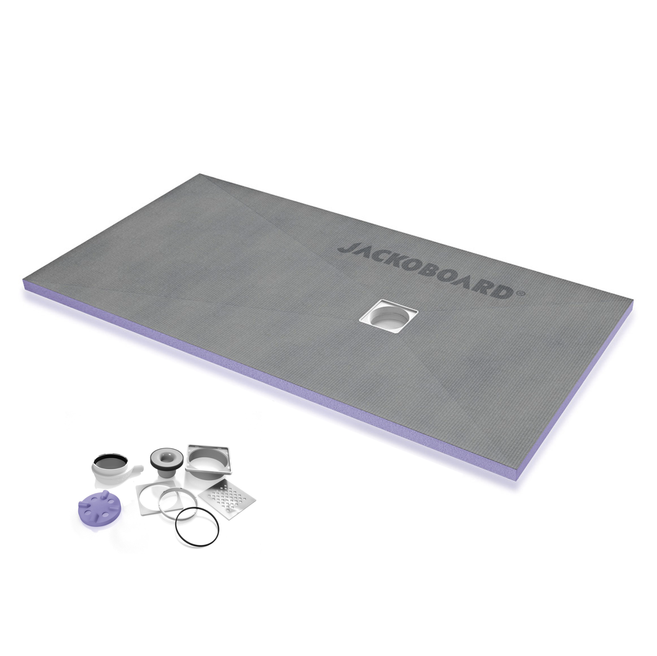 Les receveurs de douche JACKOBOARD® Aqua permettent l’aménagement personnalisé de belles salles de bains. Ils sont disponibles dans tous les formats standards et un grand nombre de dimensions et de formes sur mesure. Ils disposent d’un noyau en mousse rigide de polystyrène extrudé (XPS) hydrofuge, d’une pente préformée et d’un revêtement spécial sur les deux faces qui permet de les carreler directement, sans aucune préparation supplémentaire.
