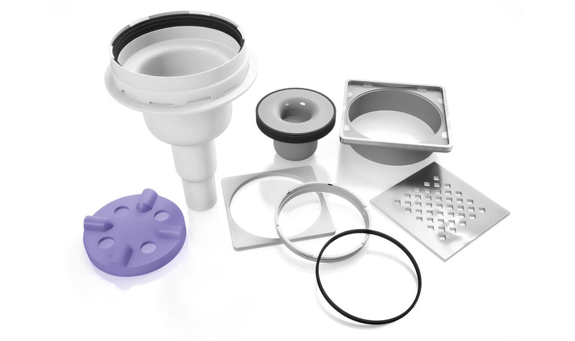 • Différents système d’écoulement avec positionnement au choix et avec grille en acier inoxydable massif
