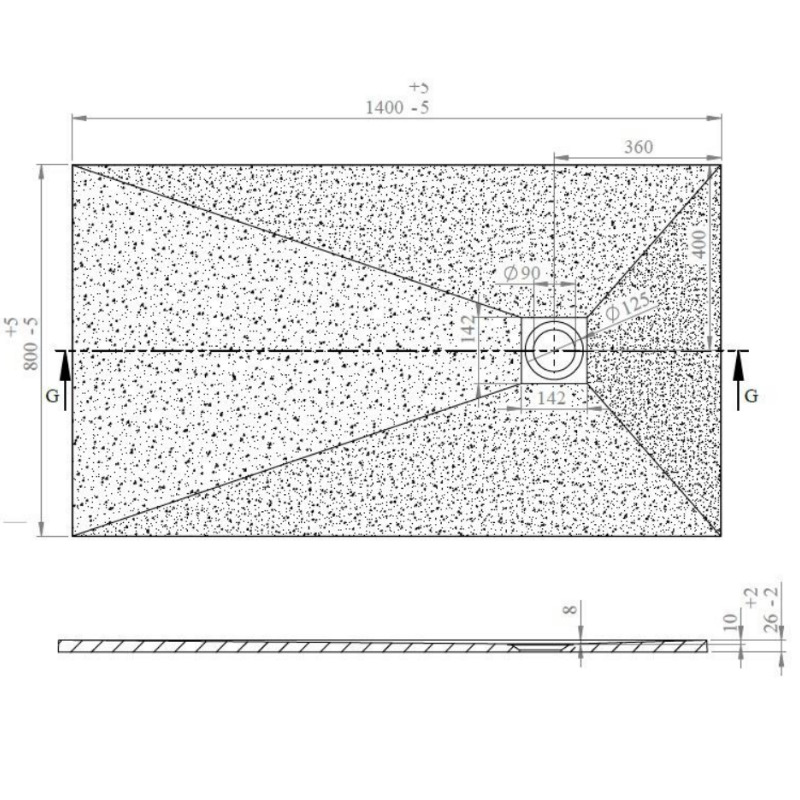 Caractéristiques du Receveur de douche rectangulaire 140x80cm avec siphon, en marbre coulé, Blanc, Swiss Aqua Technologies Alek (SATALEK14080B-S) :