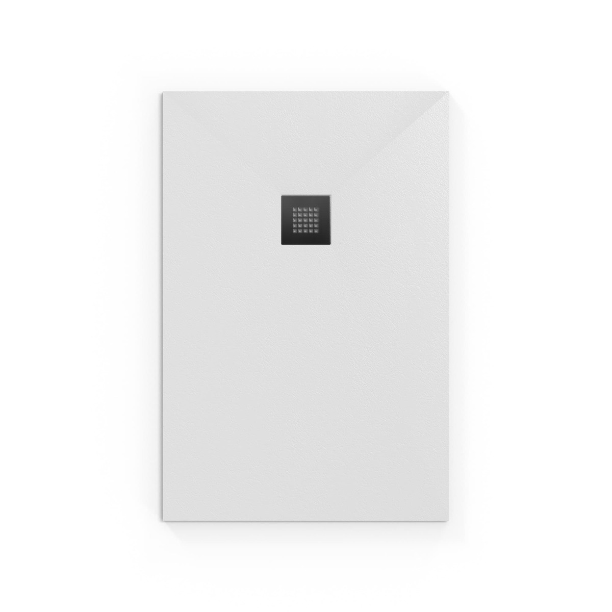 Alek Receveur de douche rectangulaire 140x80cm avec siphon, en marbre coulé, Blanc (SATALEK14080B-S)