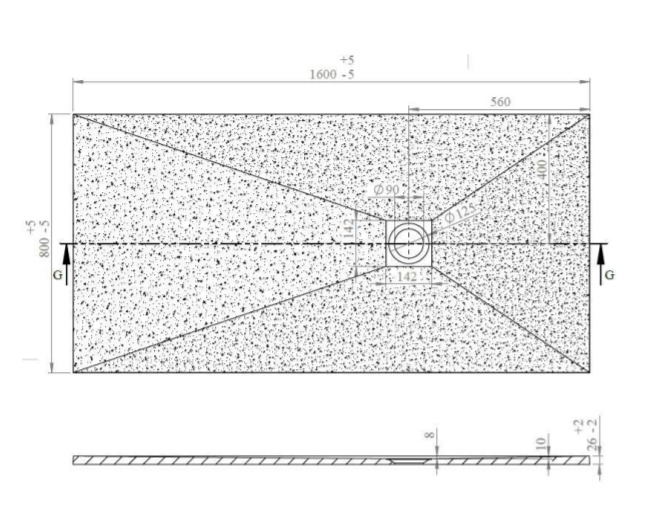 Caractéristiques du Receveur rectangulaire, 160x80cm avec siphon, en marbre coulé, Noir, Swiss Aqua Technologies B-Way (SATALEK16080-S) :