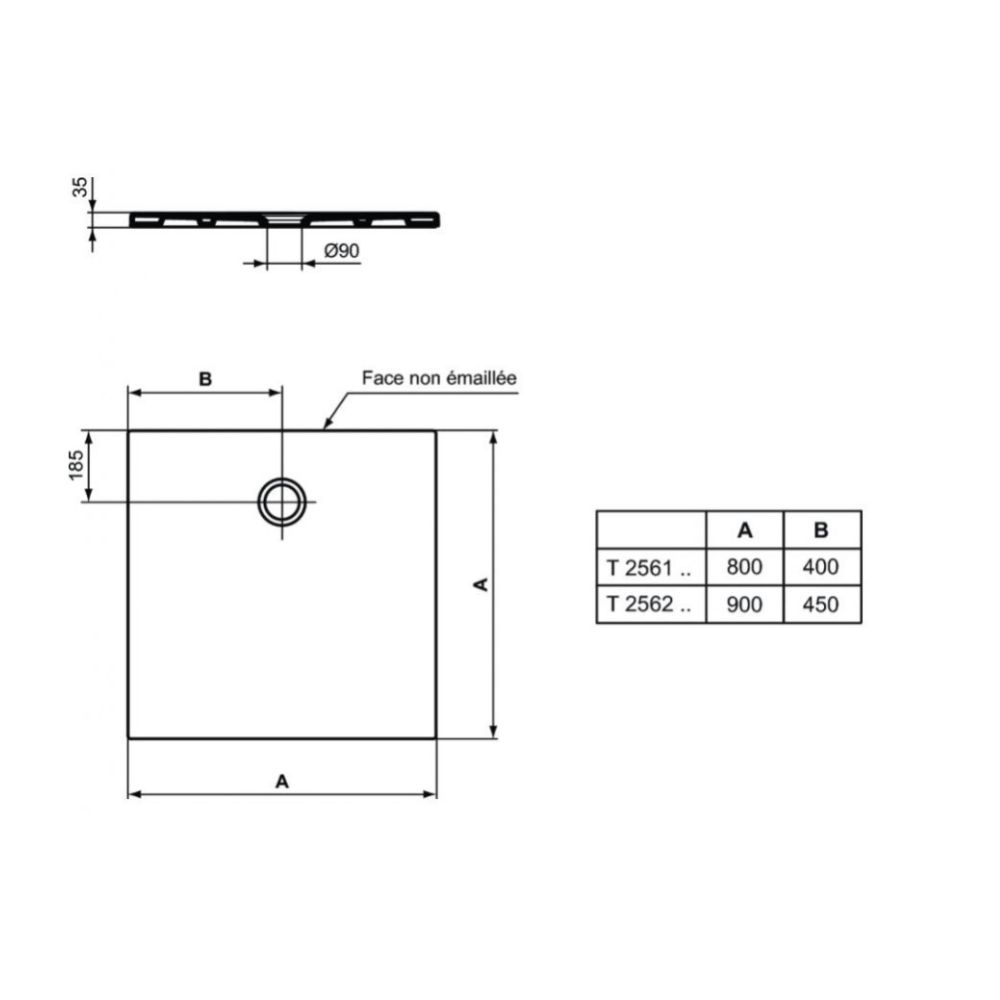 Ideal Standard STRADA 90x90cm Receveur de douche ULTRA FLAT en céramique, traitement antidérapant, blanc (T2562YK)