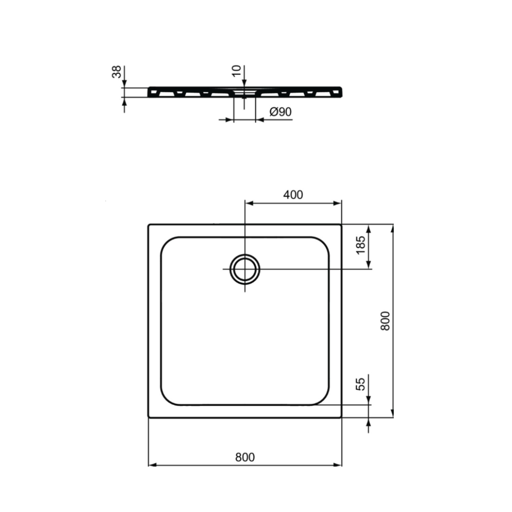 Porcher Okyris+ 80x80cm receveur de douche ultra plat 4 cm en grès, Blanc (P0202YK)
