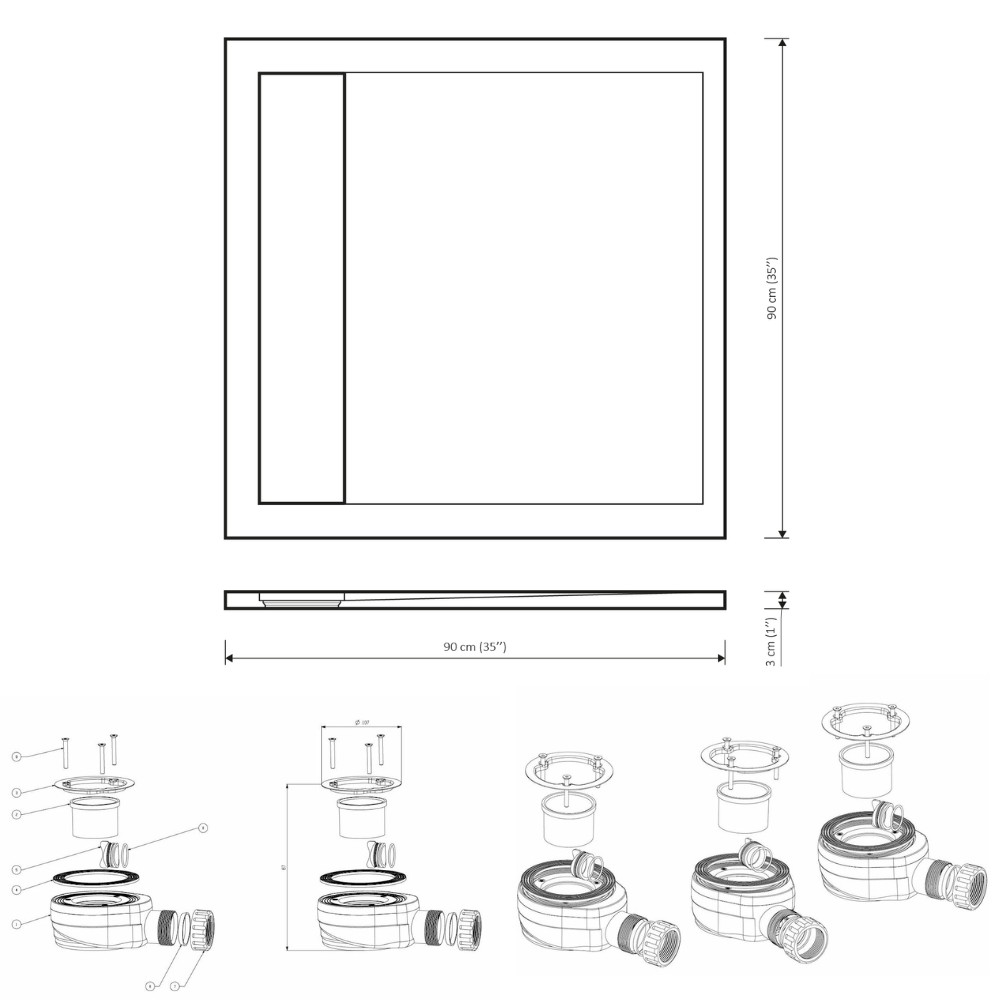 Caractéristiques du receveur de douche 90x90cm en pierre de synthèse durable avec siphon, Ceramia Alda, blanc mat (ALD15-9090B-S) :