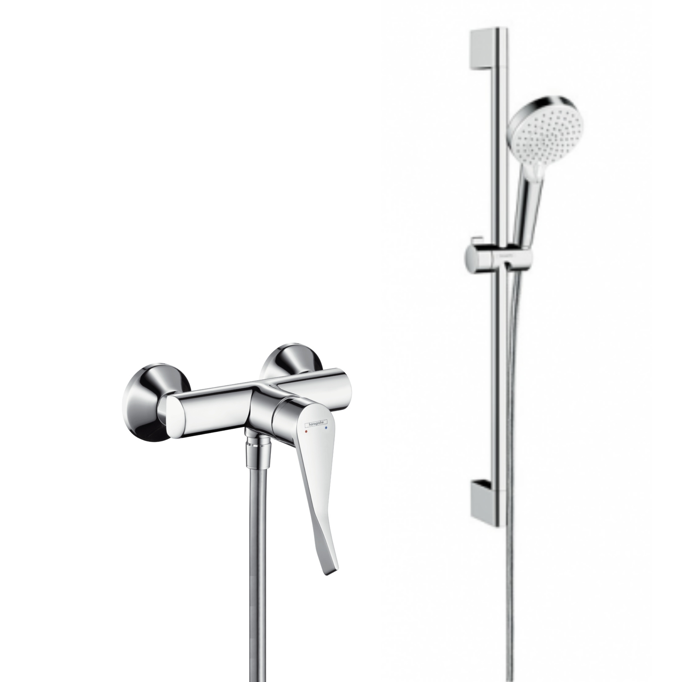Hansgrohe Pack Focus Care PMR Mitigeur de douche avec poignée extra longue + Set de douche Crometta Vario (31916000-CROMETTA)