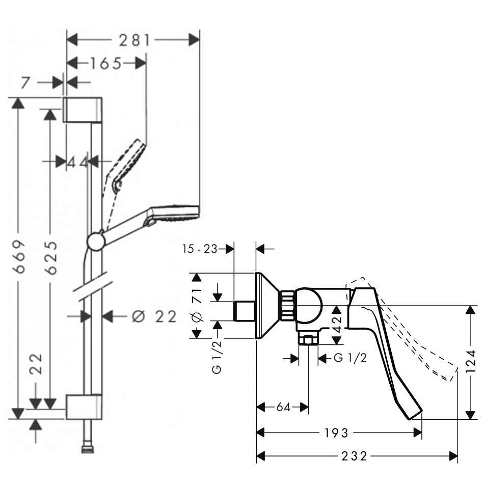Hansgrohe Focus Care Mitigeur de douche avec poignée extra longue (31916000) :