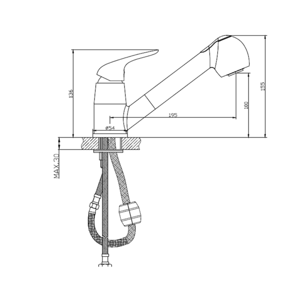 - Avec douchette extractible 2 jets (jet standard, jet de douche)