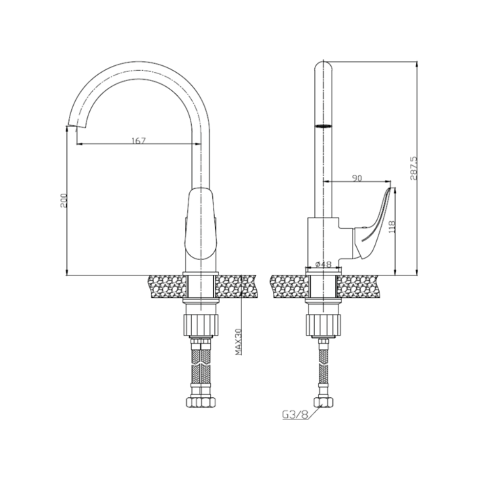 Siko S-Line Pro miscelatore da cucina con braccio girevole, cromo (SIKOBSLPRO280)