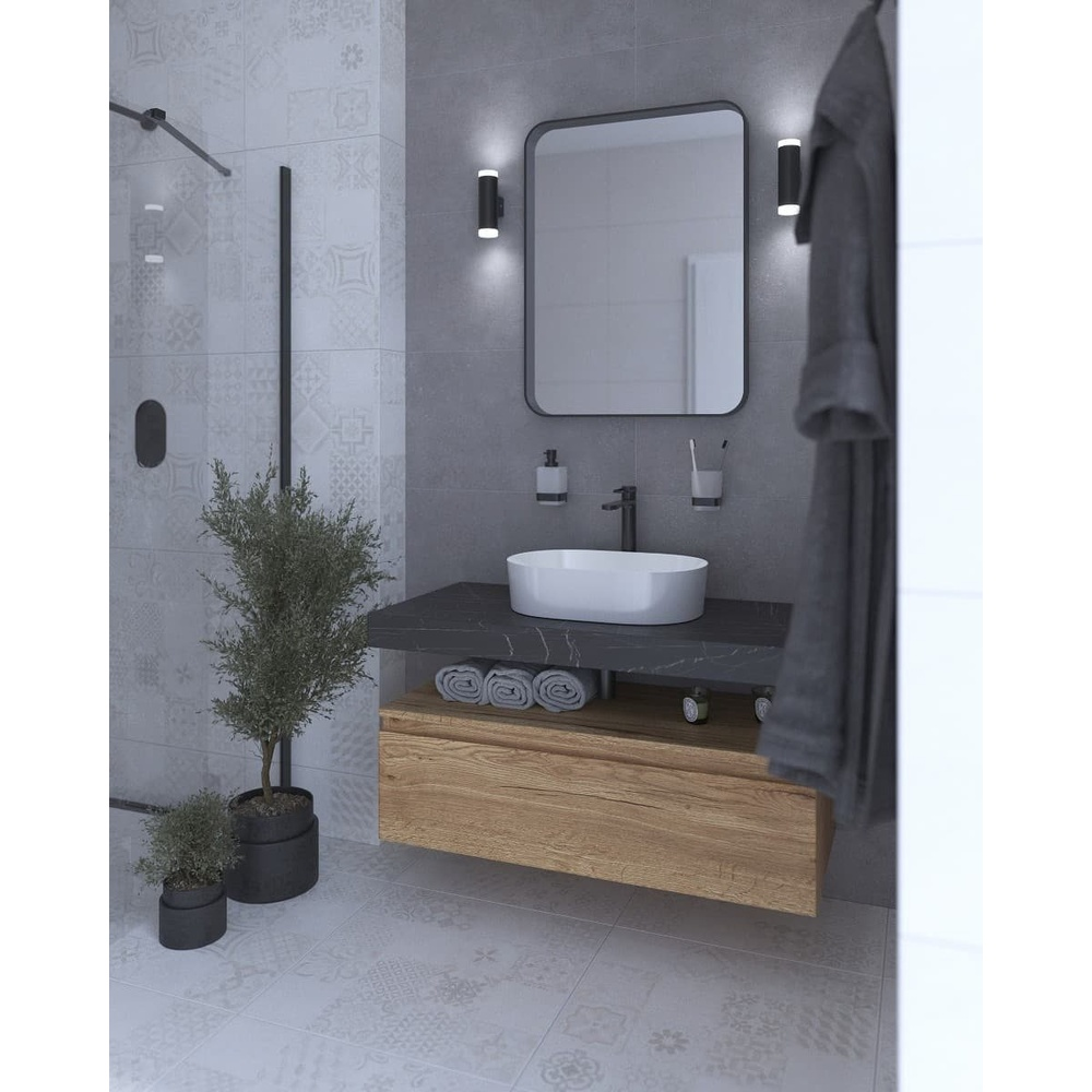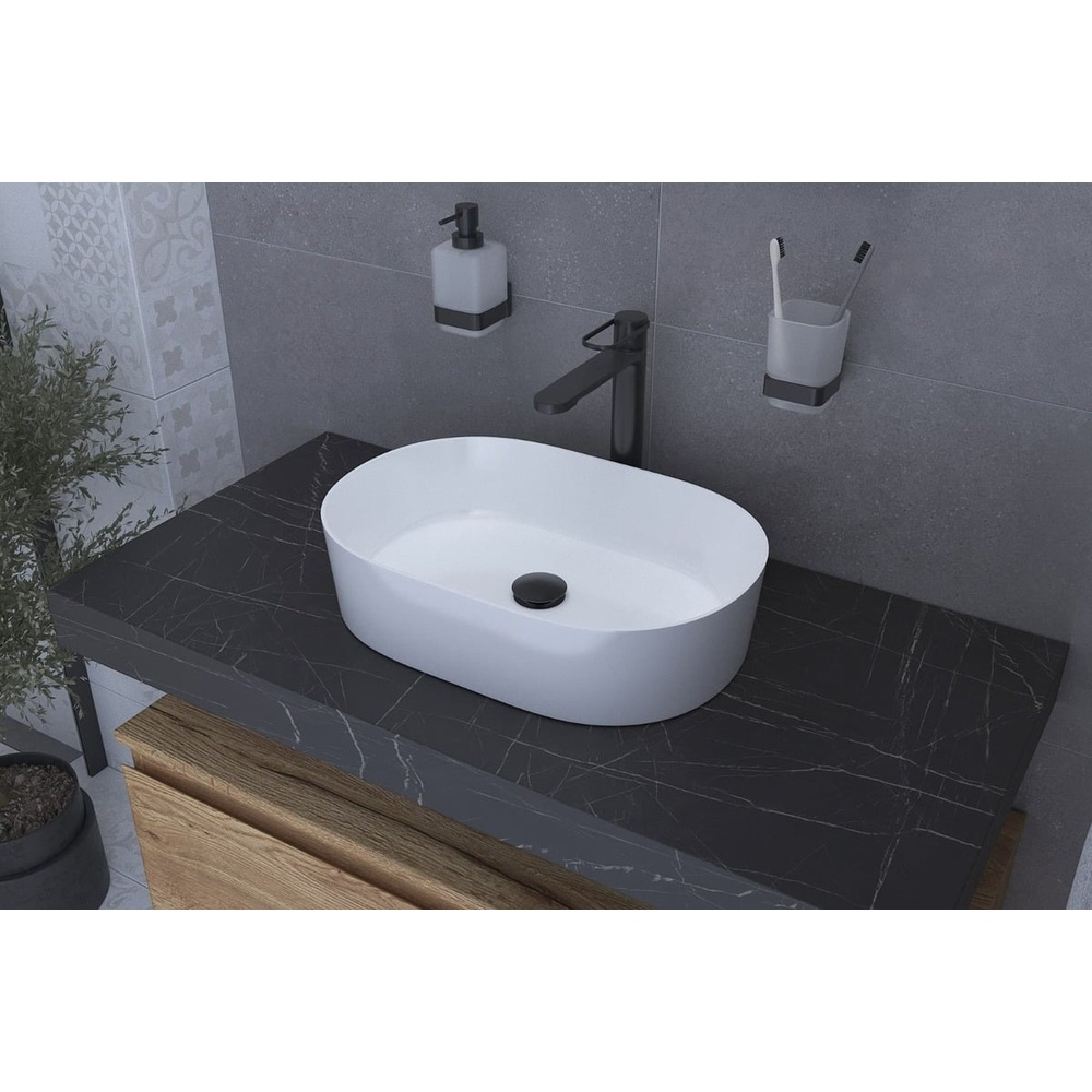 - Forme : ovale, à poser sur meuble ou plan de toilette