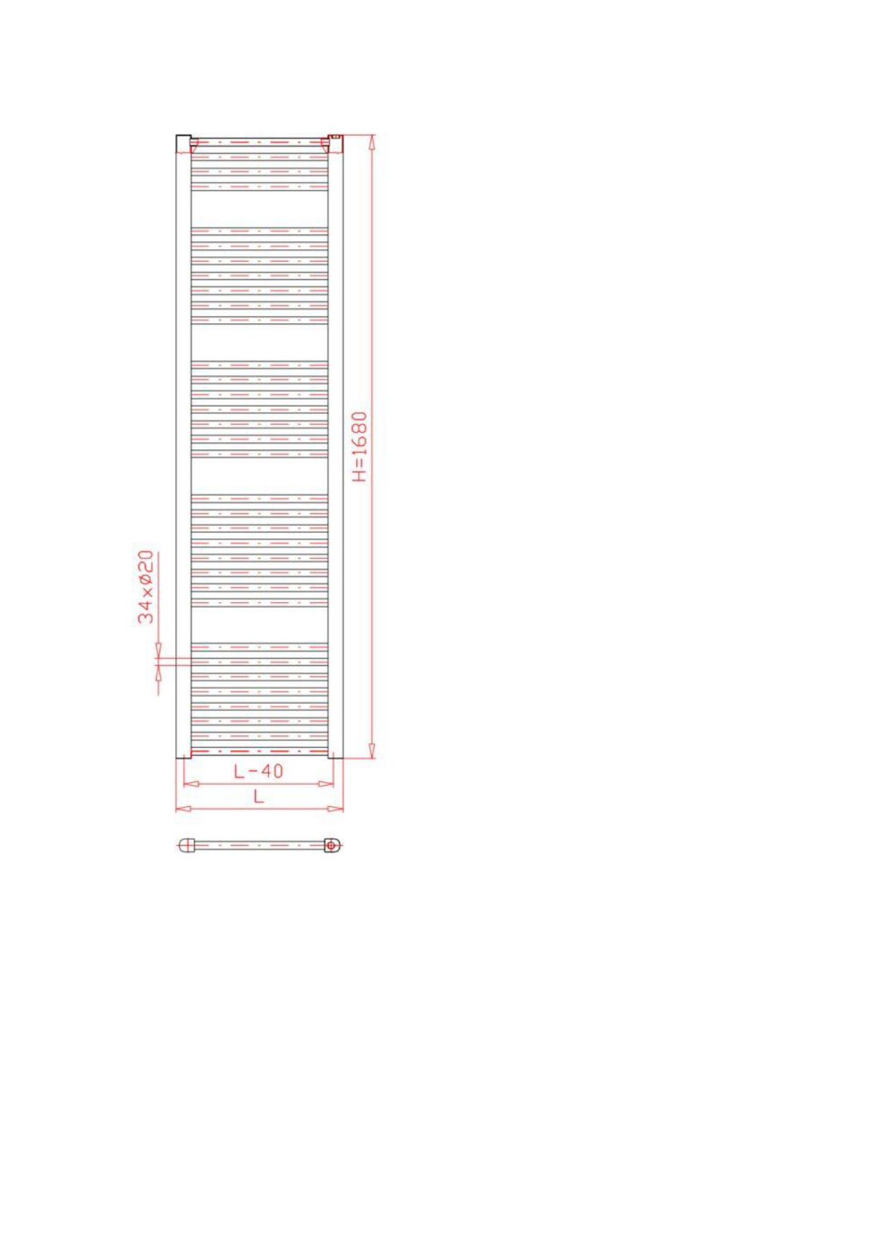 Dimensions : 60x168 cm. Profondeur de construction standard B : 83 – 93 millimètres Fils de connexion : G 1/2" interne Température de fonctionnement maximale : 110°C Surpression maximale de fonctionnement : 1,0 MPa Test de surpression : 1,5 MPa Performance thermique selon EN 442