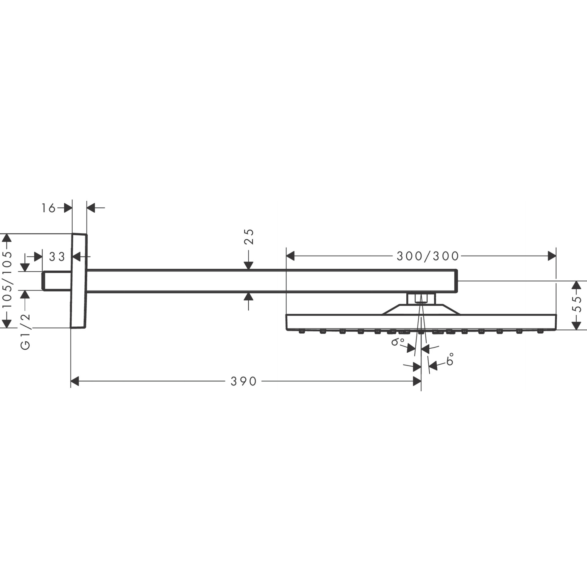 • Longueur du bras de douche: 390 mm