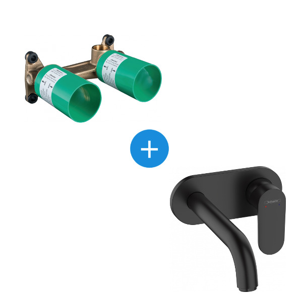 Hansgrohe Vernis Blend Set Mitigeur de lavabo encastré mural, bec 207 mm + Corps d'encastrement, Noir mat (71576670-SET)