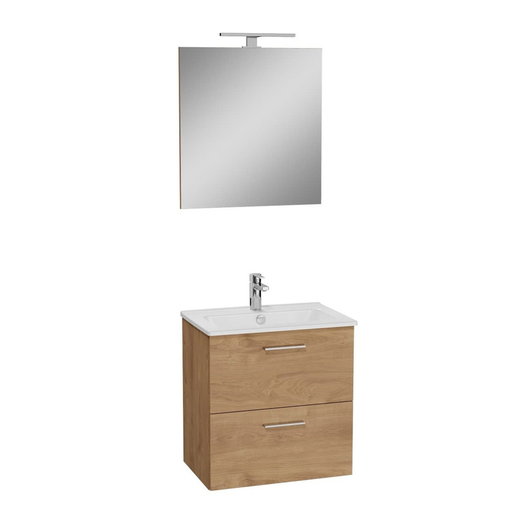 Vitra Mia ensemble avec meuble préassemblé 59x61x39,5 cm + miroir + lavabo céramique + éclairage LED, chêne (MIASET60D)