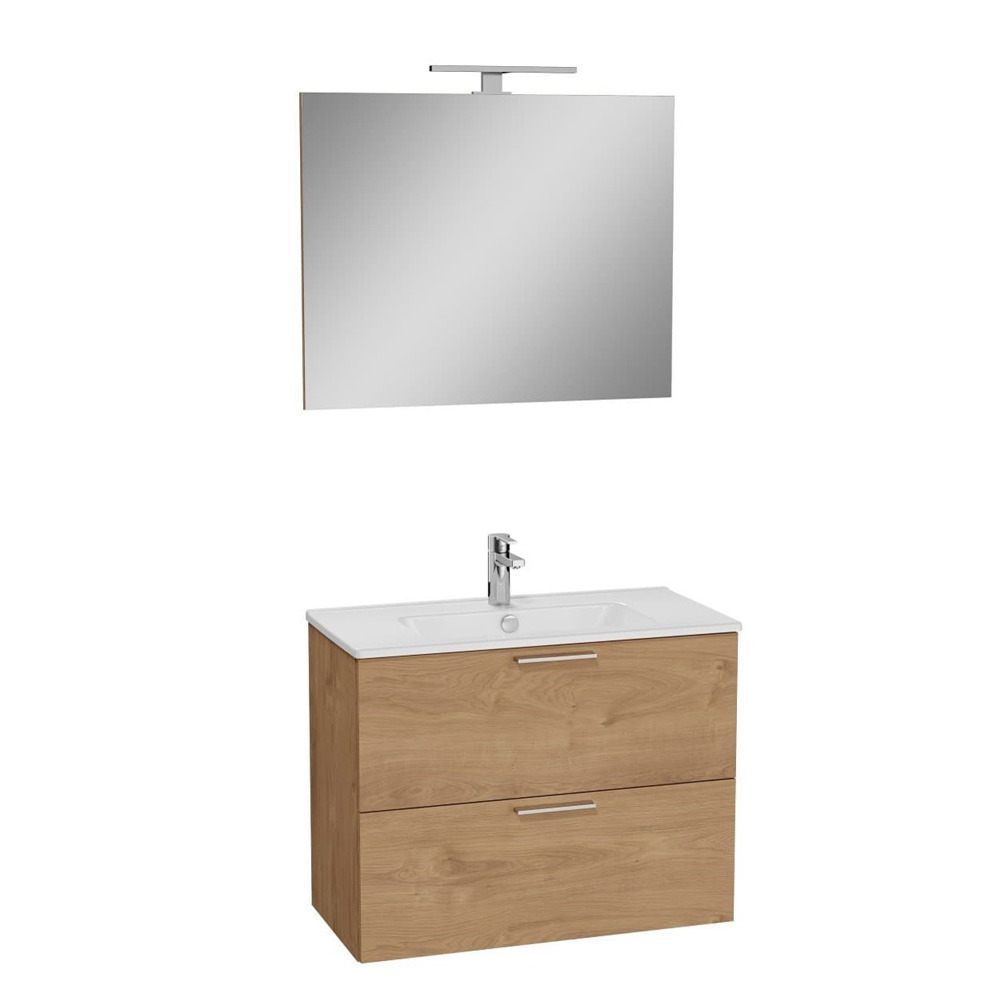 - Mia Meuble 79x61x39,5 cm pour salle de bain avec miroir, lavabo et éclairage LED, Chêne (MIASET80D)