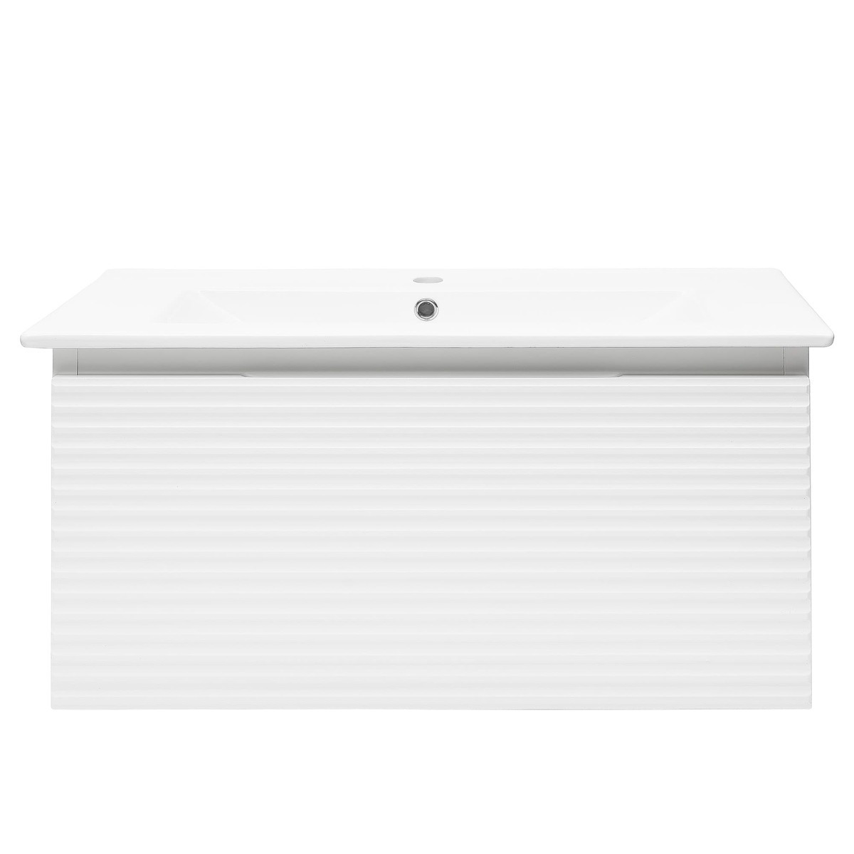 Naturel Meuble et vasque salle de bain strié Savona 98x43x44,8 cm, Blanc Brillant (SAVONA100BI)