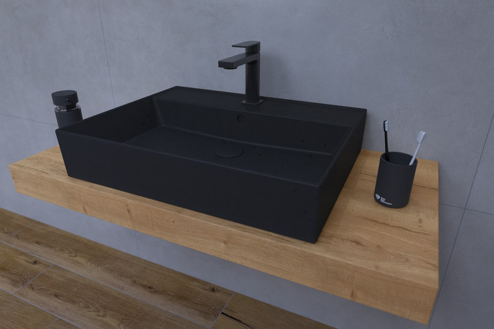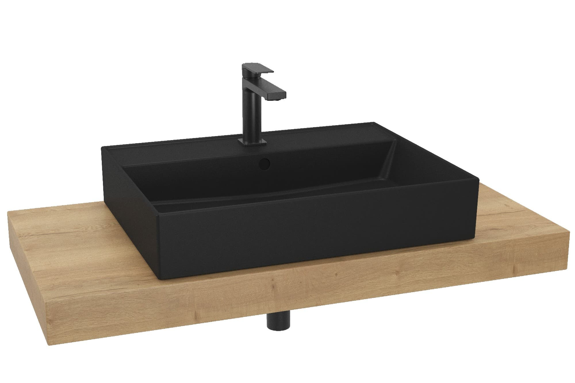 "L'ensemble de salle de bain SAT composé d'un lavabo, d'une plaque sous le lavabo et d'une robinetterie sur socle est une combinaison de minimalisme pur et de design moderne. Leurs formes simples et leur design parfait donnent à l’ensemble un look intemporel." L'ensemble est constitué des éléments suivants :Mitigeur lavabo SAT B-Way sans drain noir mat SATBSBW271