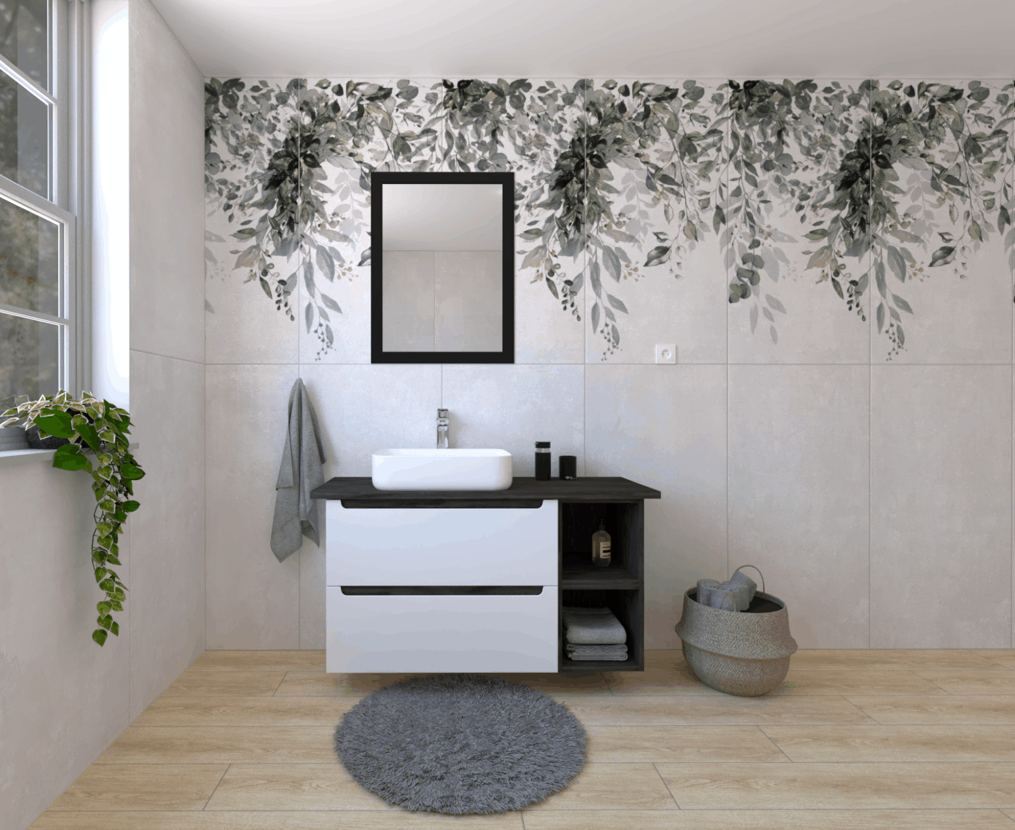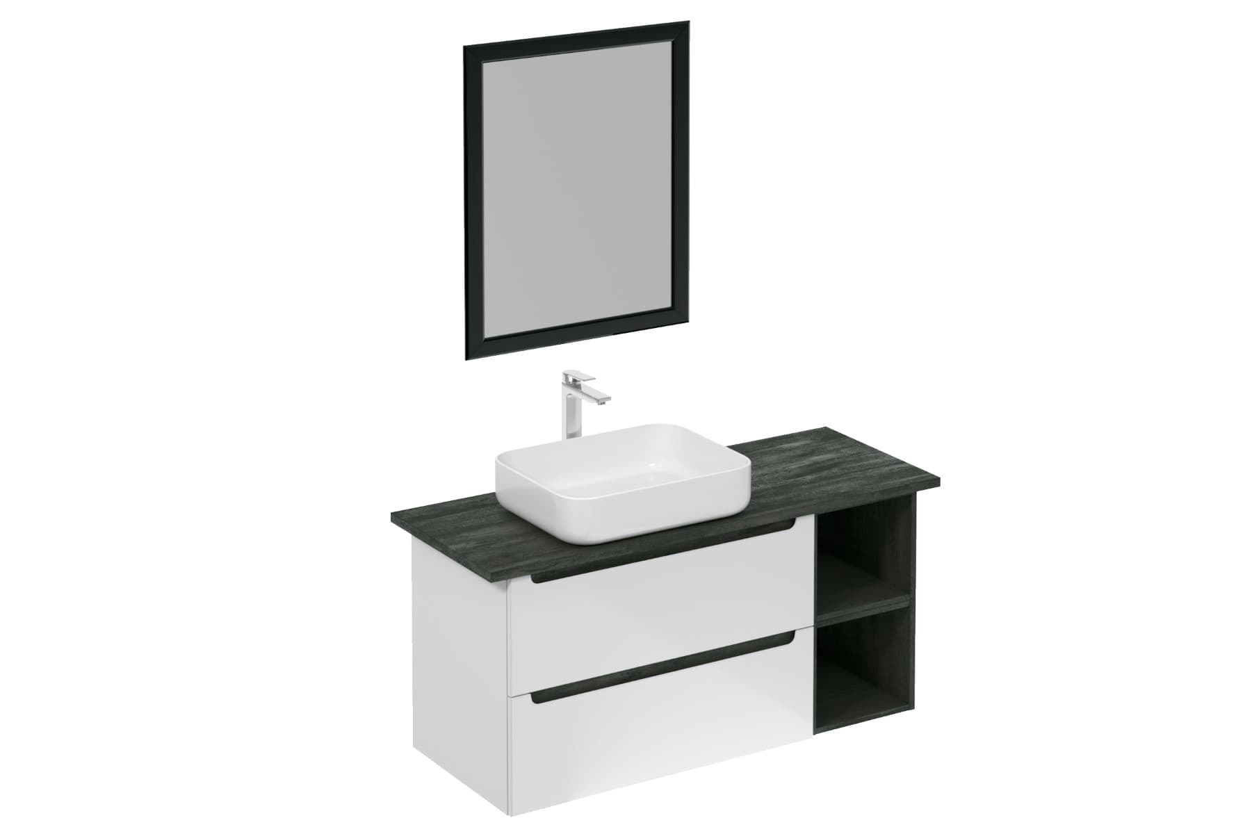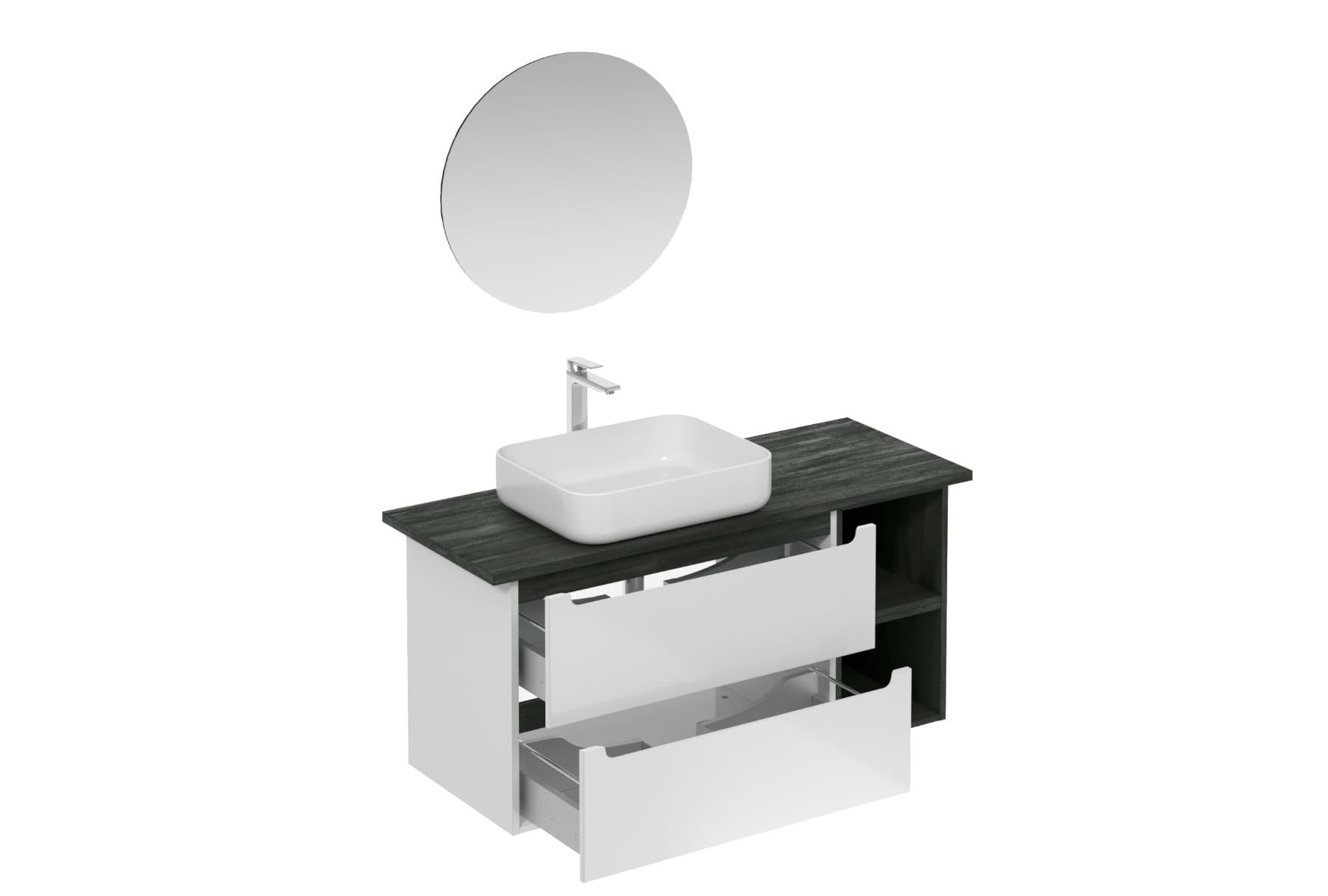 Ensemble de salle de bain mural avec lavabo en céramique blanc avec surface en mélaminé :