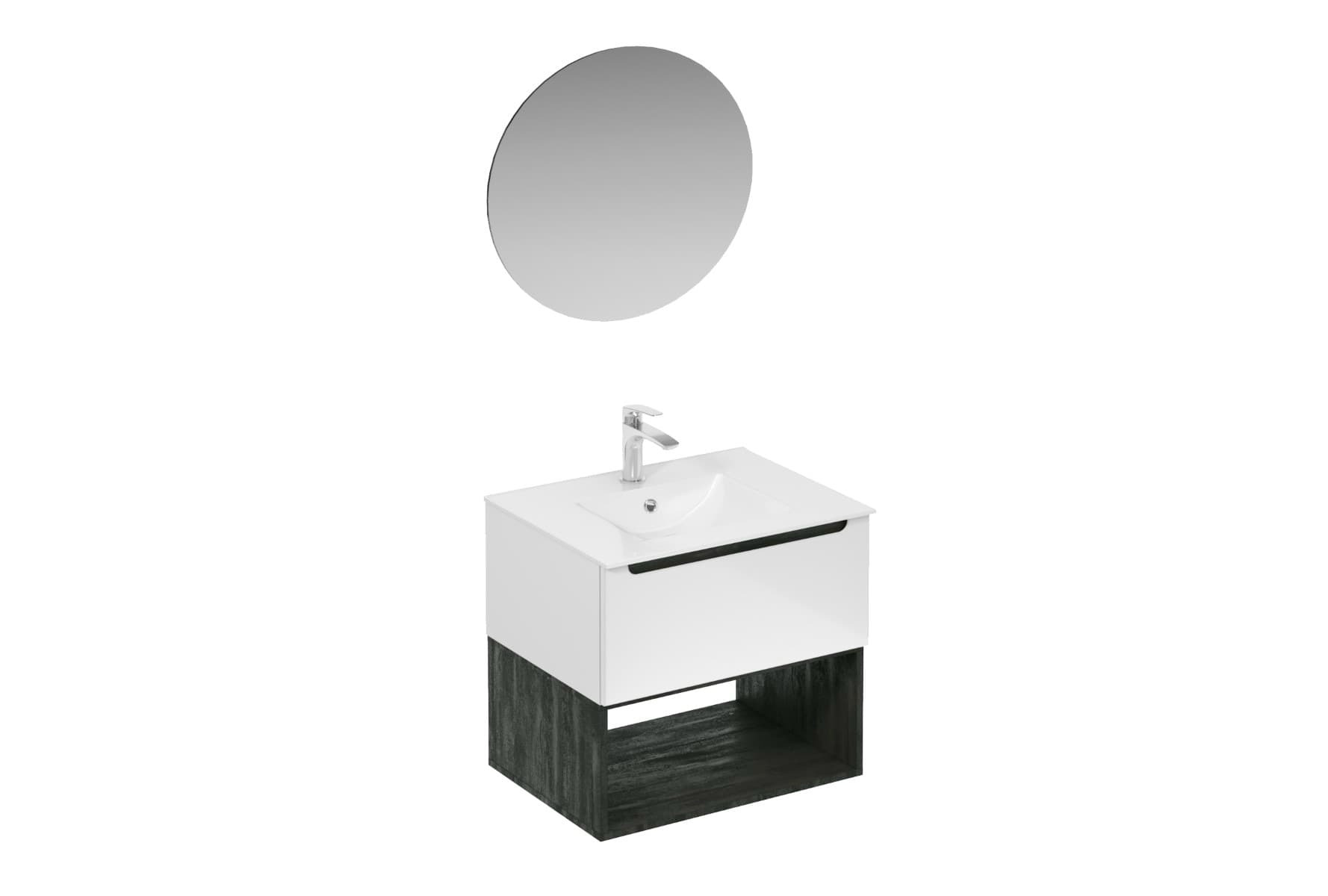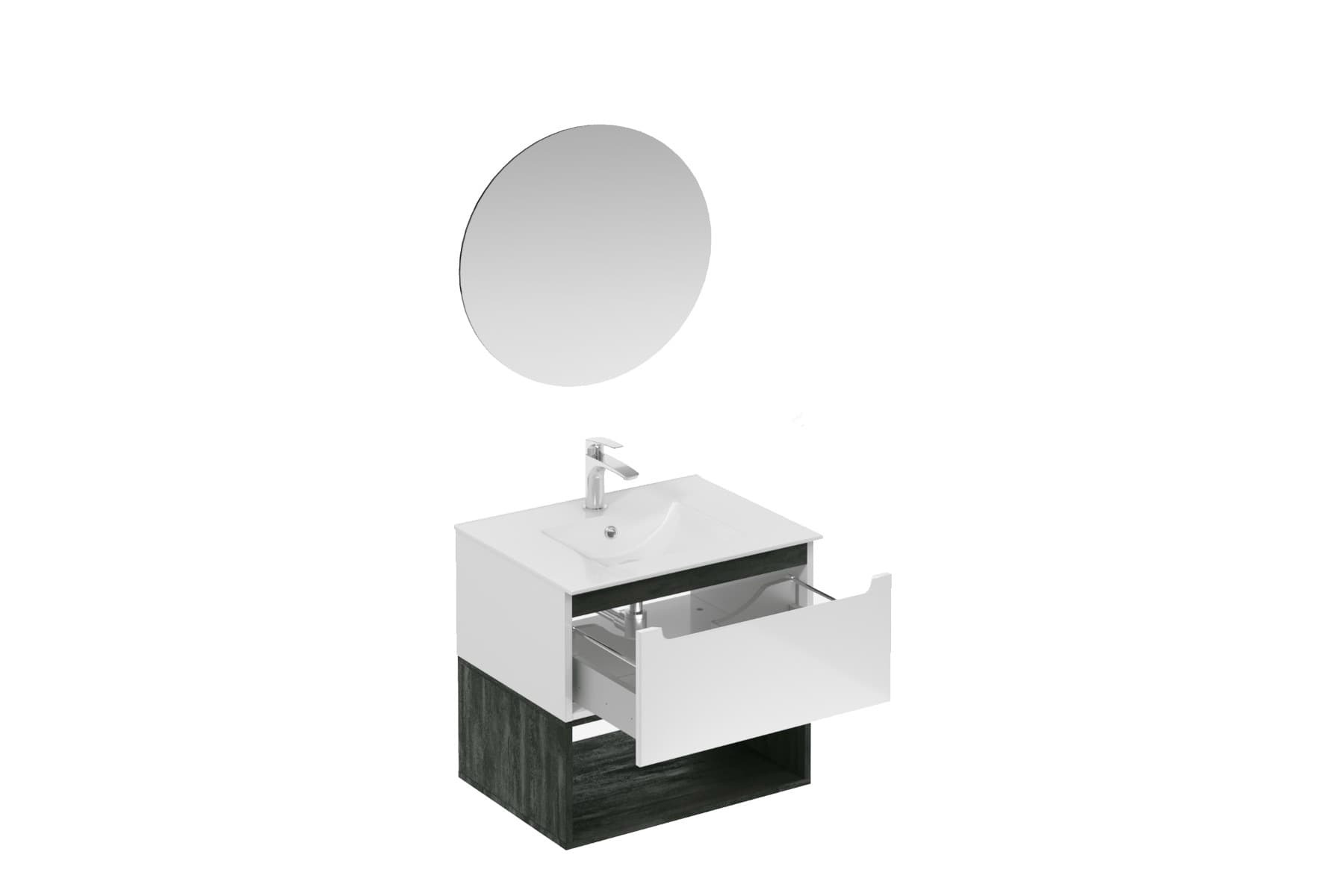 Ensemble de salle de bain mural avec lavabo en céramique blanc avec surface en mélaminé :
