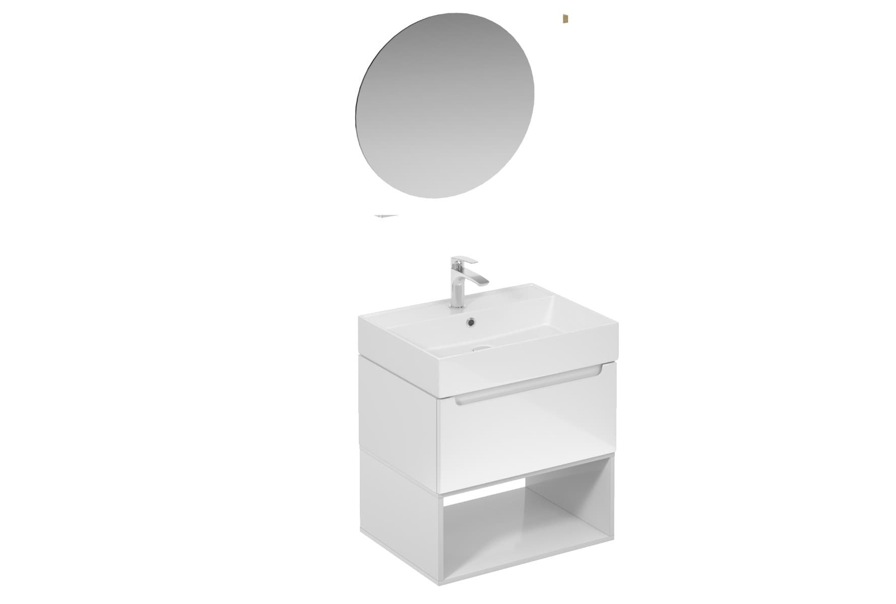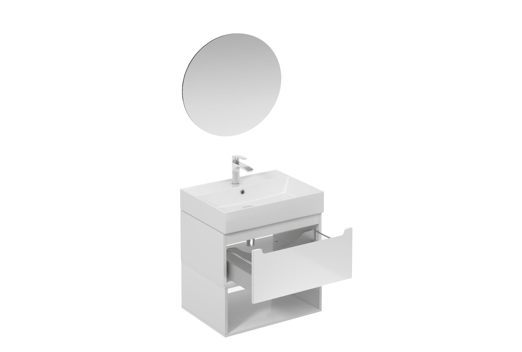 Ensemble de salle de bain mural avec lavabo en céramique blanc avec surface en mélaminé :