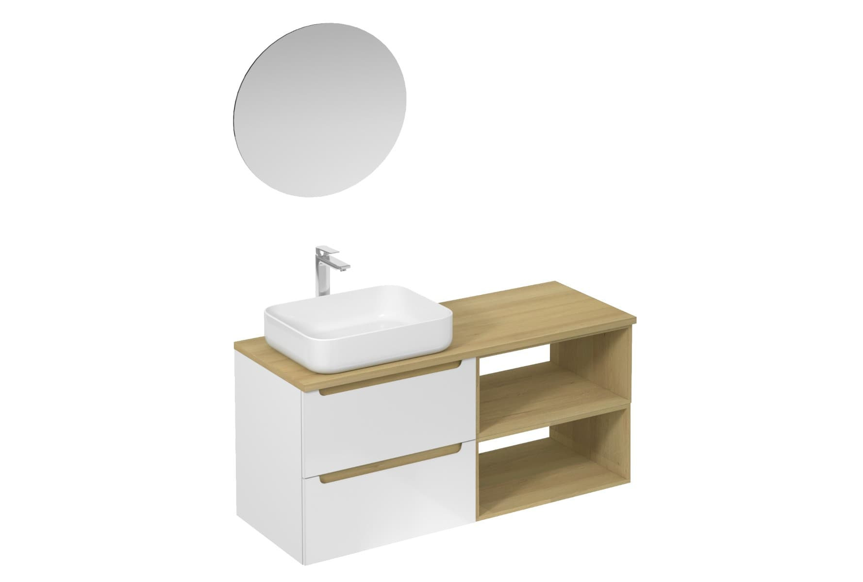 Cet aménagement au design épuré et moderne propose des équipements fonctionnels. Il idéal pour ranger simplement ses accessoires de salle de bain.