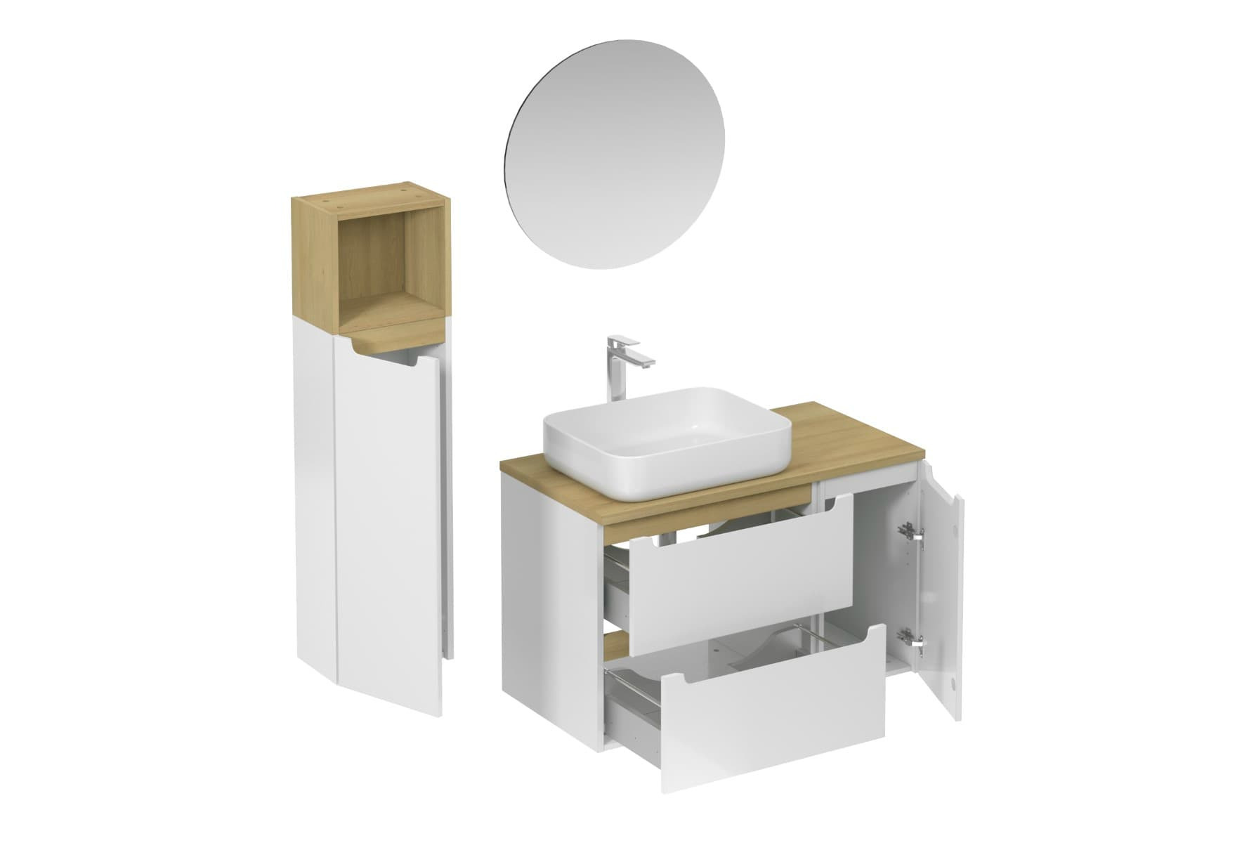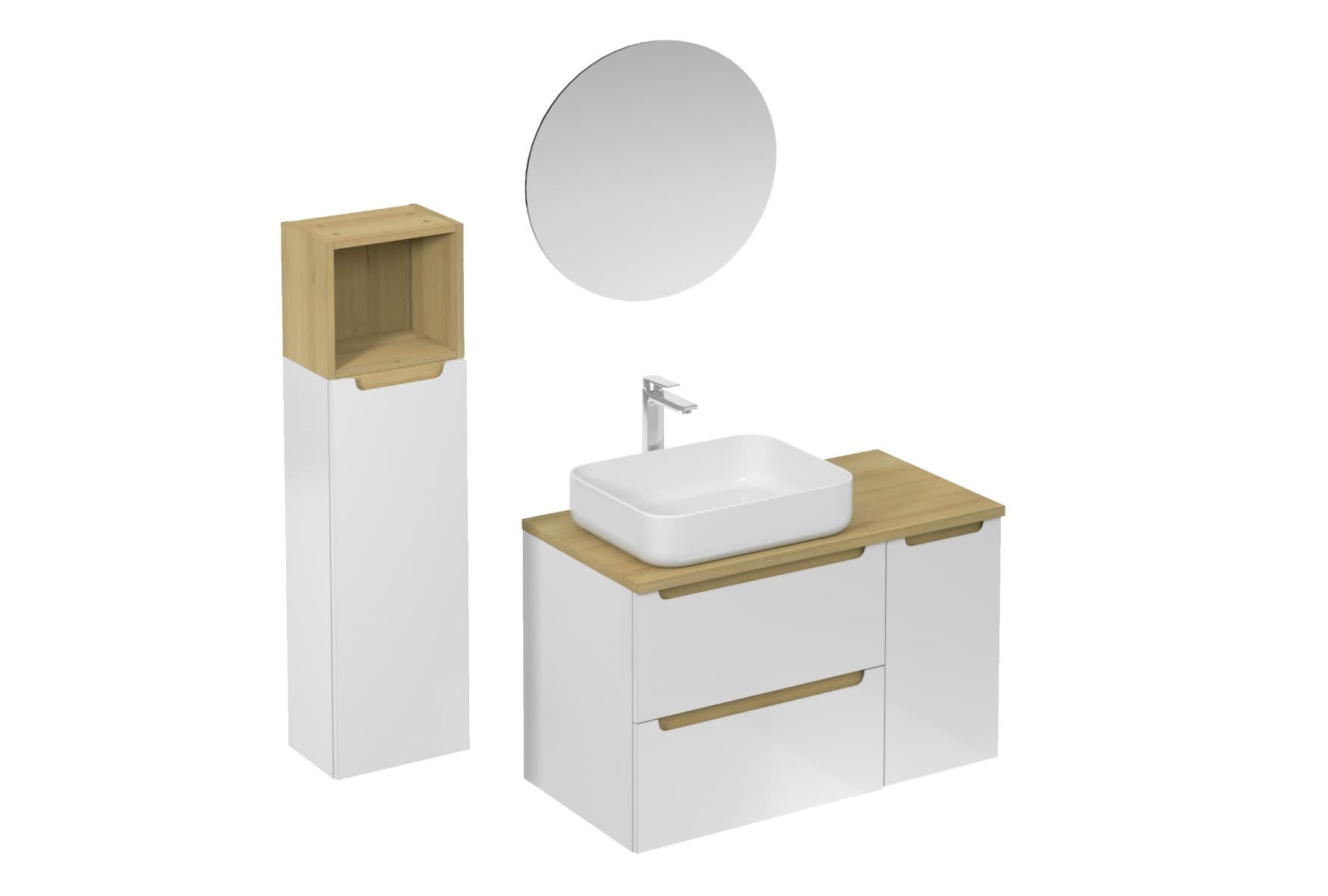 Ensemble de salle de bain mural avec lavabo en céramique blanc avec surface en mélaminé :