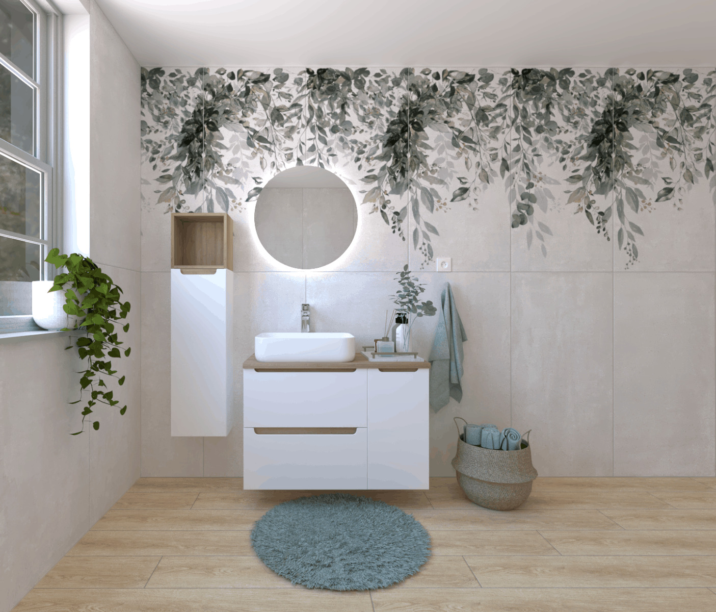 L'ensemble de salle de bain avec lavabo Naturel Stilla en blanc brillant avec des composants de couleur béton noir rendra plus agréables les moments quotidiens passés dans la salle de bain et constitue une combinaison parfaite d'élégance, de qualité et de praticité. Des lignes fines avec des éléments en bois confèrent à cet ensemble un style intemporel. Chaque détail a été soigneusement conçu pour donner à votre salle de bain un aspect élégant et moderne, tout en offrant des espaces de rangement pratiques pour tous vos besoins.