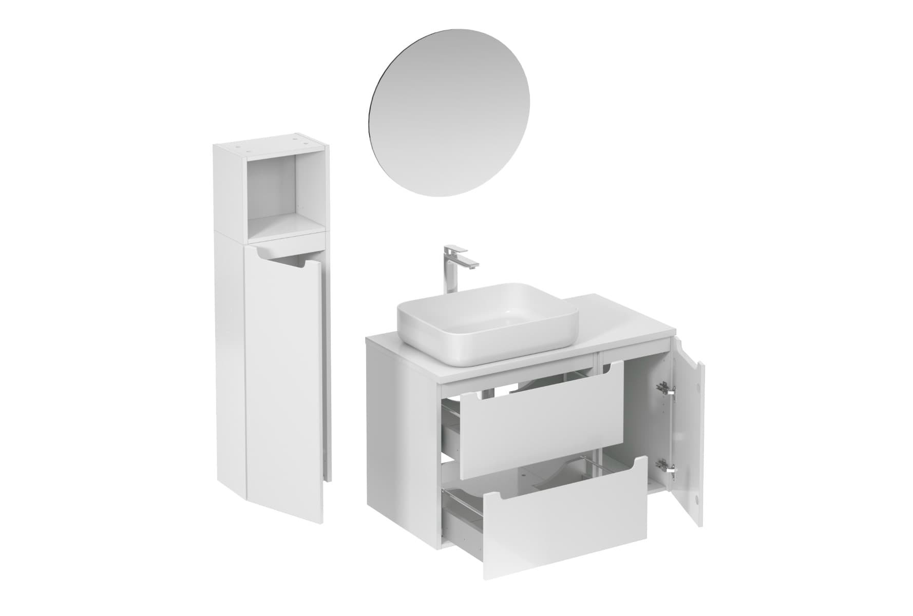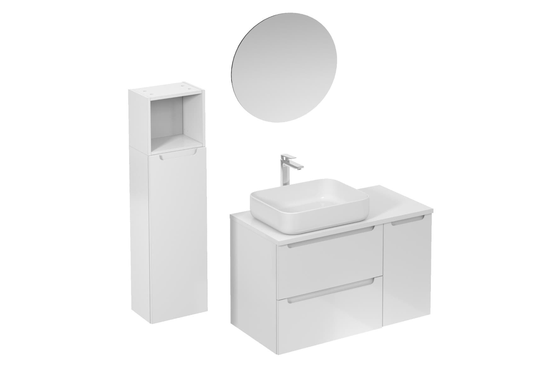 Ensemble de salle de bain mural avec lavabo en céramique blanc avec surface en mélaminé: