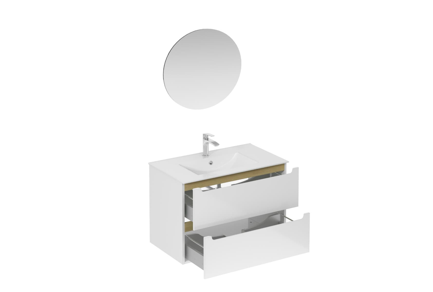 - Meuble de salle de bain avec lavabo Naturel Stilla 80x60x45 cm blanc. La façade et le corps sont recouverts d'un vernis photopolymérisable. Les tiroirs sont équipés du système Soft Close.