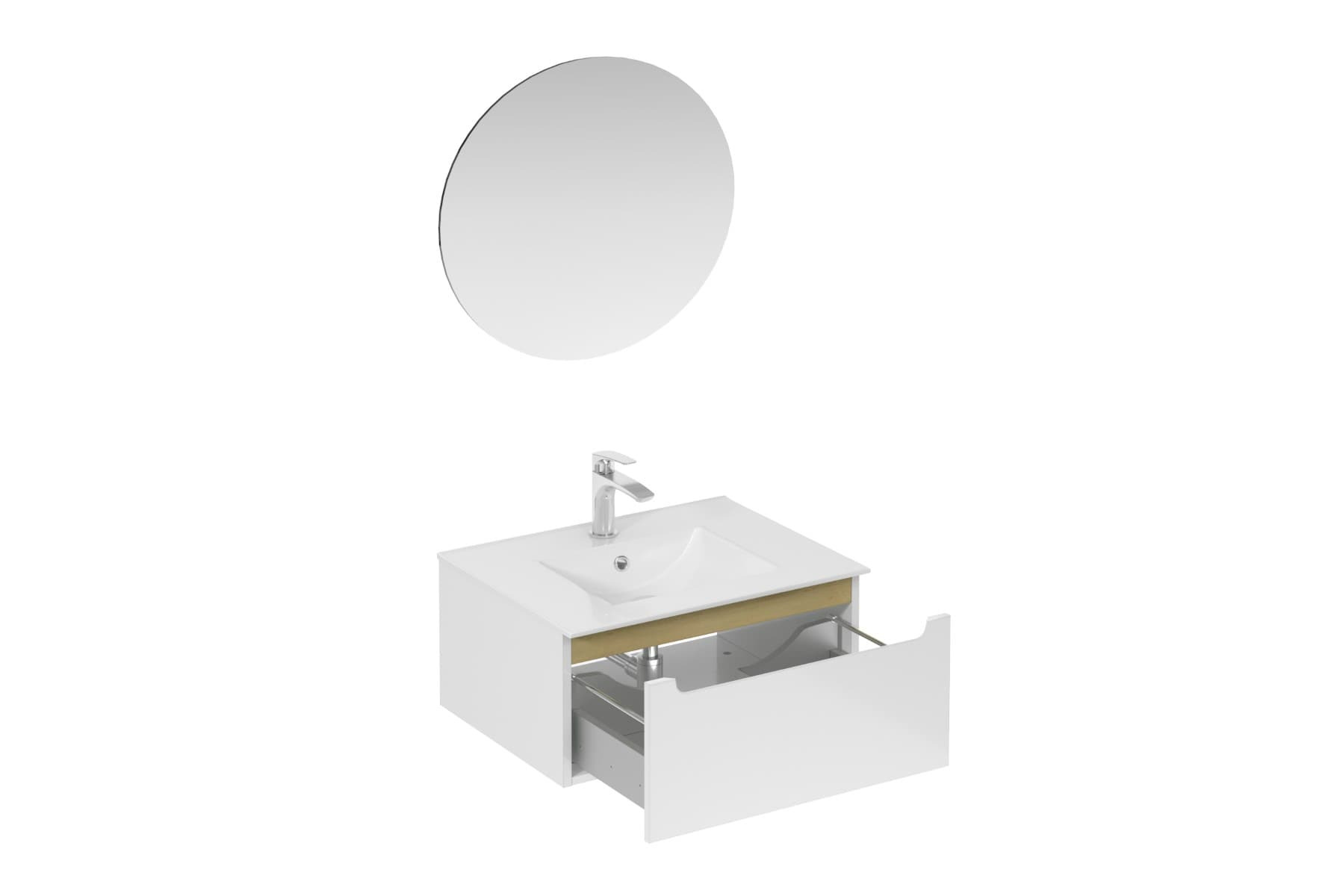 Ensemble de salle de bain mural avec lavabo en céramique blanc avec surface en mélaminé :
