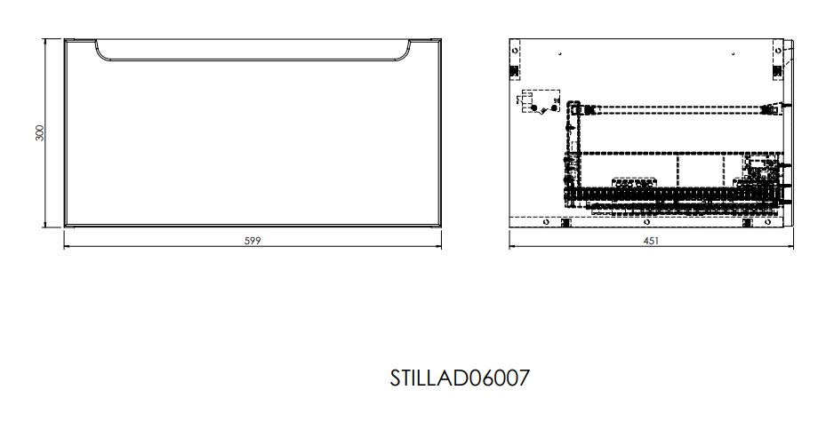 Meuble de salle de bain suspendu Stilla avec un tiroir de taille 60x30x45 cm avec lavabo élégant SAT Infinitio SATINF6046. L'armoire fait partie de la collection modulaire STILLA et peut être combinée avec des armoires supplémentaires, des boîtes à étagères et des plaques de recouvrement de votre choix. Cette solution vous permet d'obtenir plus d'espace de rangement pour tous les accessoires de salle de bain.