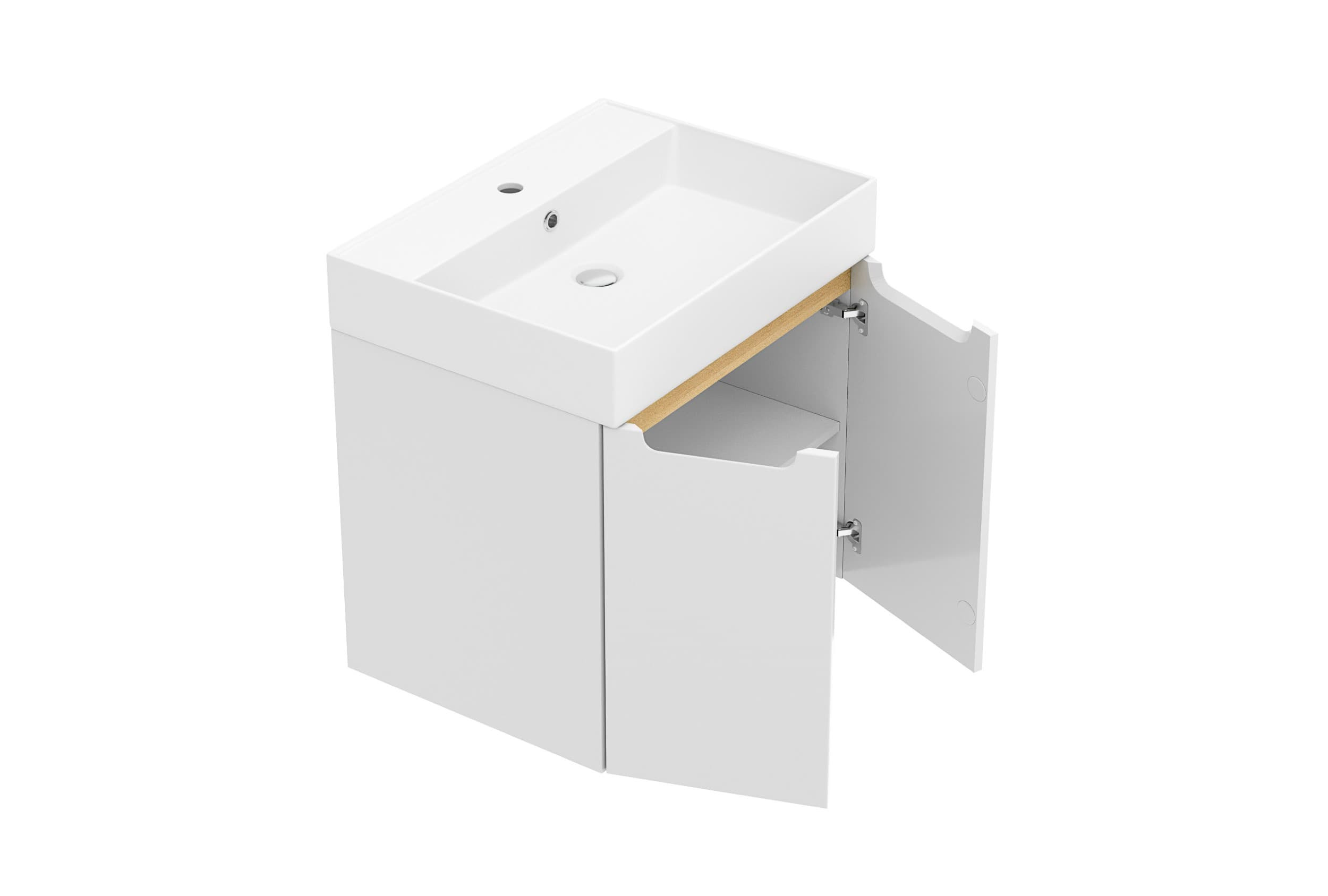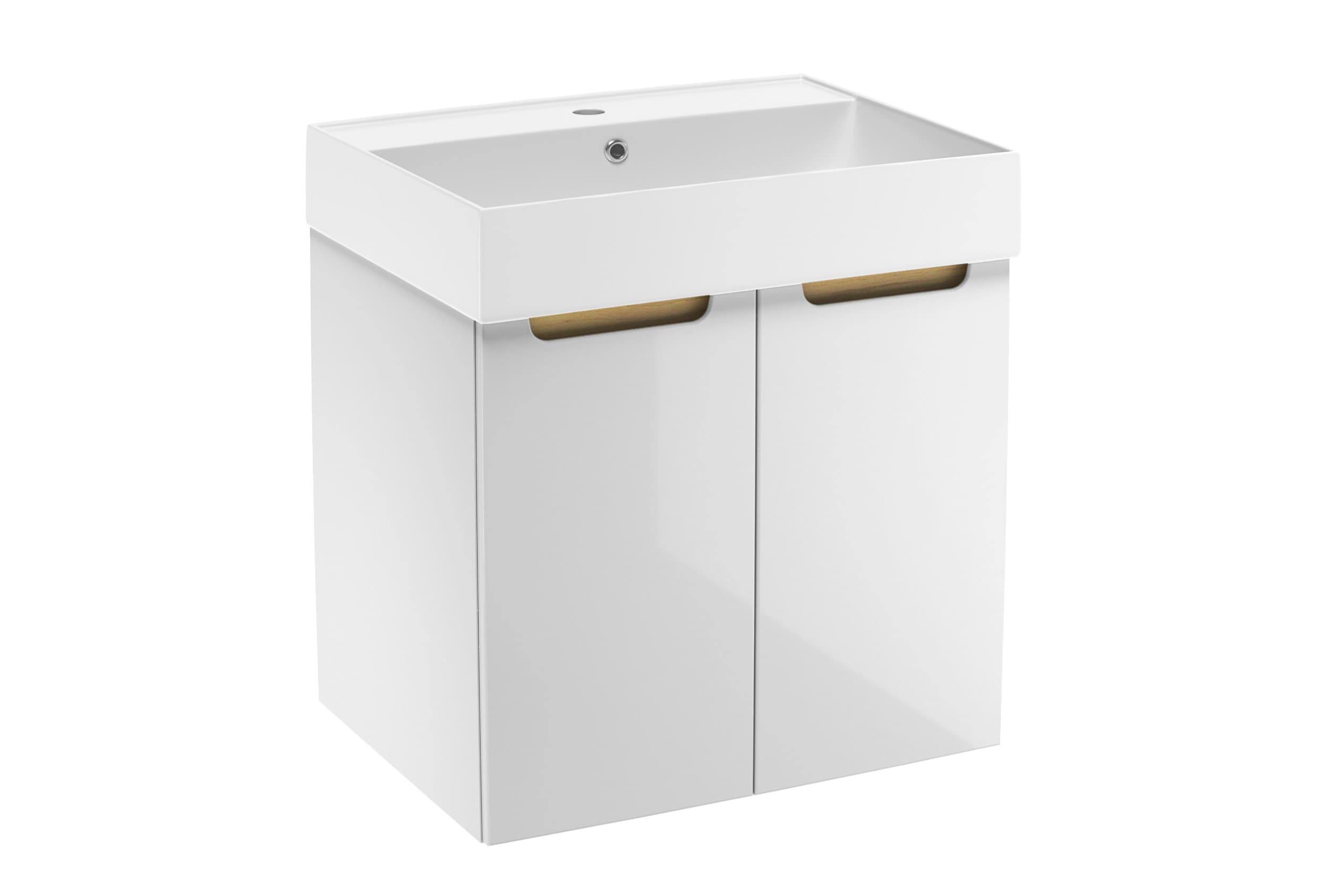 Meuble de salle de bain suspendu avec lavabo en céramique SATINF6046 en blanc. Dimensions 60x60x45 cm. Face avant en mélaminé laqué. Le produit est livré démonté, avec instructions de montage.