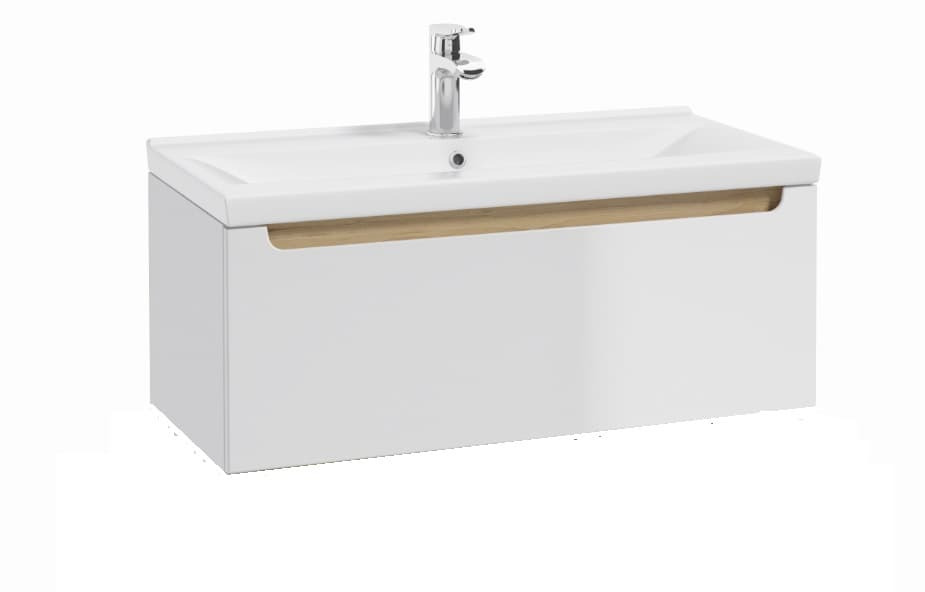 Meuble de salle de bain suspendu avec lavabo en céramique VERSO80 en blanc. Dimensions 80x30x45 cm. Face avant en mélaminé laqué. Tiroir avec découpe pour siphon. Le produit est livré démonté, avec instructions de montage.