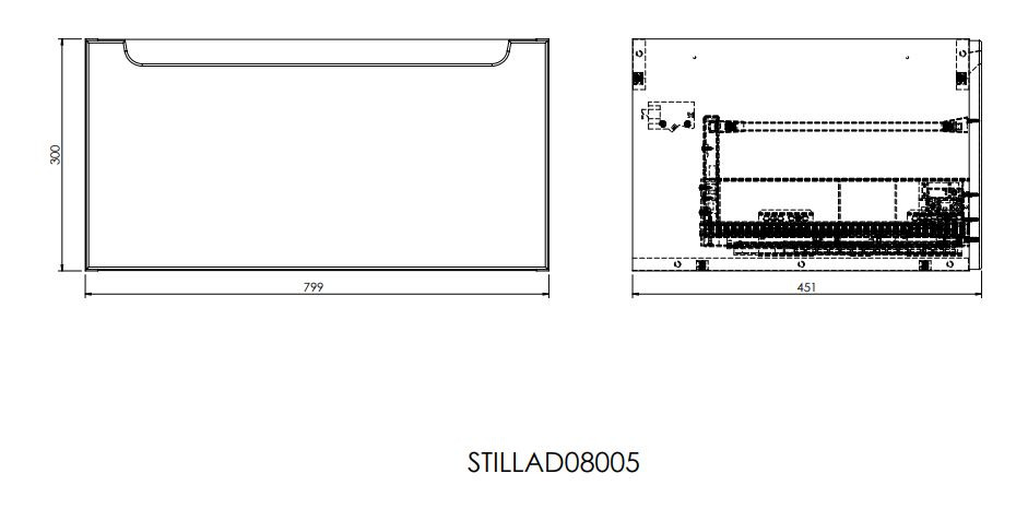 Meuble de salle de bain suspendu Stilla avec un tiroir de 80x30x45 cm avec un élégant lavabo moderne Verso VERSO80. L'armoire fait partie de la collection modulaire STILLA et peut être combinée avec des armoires supplémentaires, des boîtes à étagères et des plaques de recouvrement de votre choix. Cette solution vous permet d'obtenir plus d'espace de rangement pour tous les accessoires de salle de bain.