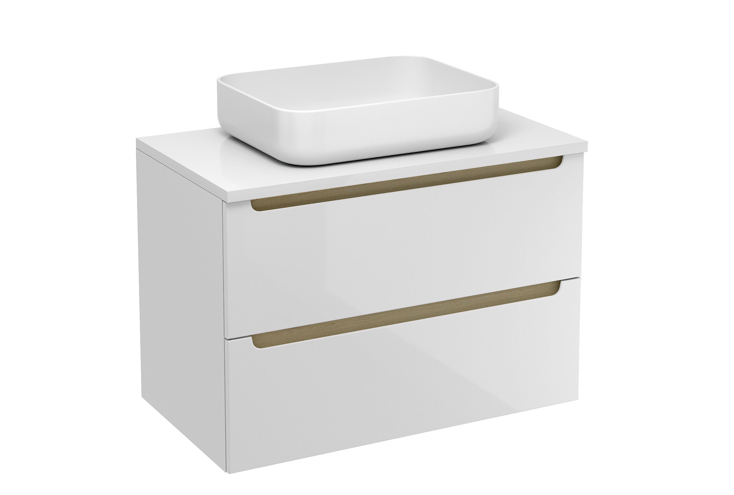 Meuble de salle de bain suspendu Stilla avec deux tiroirs de dimensions 80x60x45 cm avec plaque de recouvrement de couleur blanche. Le meuble fait partie de la collection modulaire et peut être combiné avec le plateau de la couleur de votre choix. En choisissant un plateau plus large que le meuble, il est possible de créer un agencement individuel en ajoutant d'autres meubles et des caissons de la collection. Cette solution vous permet d'obtenir plus d'espace de rangement pour tous les accessoires de salle de bain.