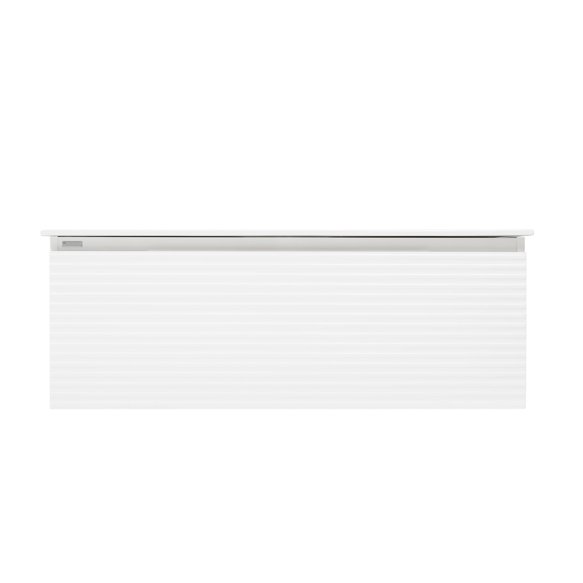 Le meuble vasque Savona se démarque par son motif cannelé, avec son apparence design et intemporelle. Sa façade blanche brillante apporte une singularité incomparable à l'espace, tandis que sa porte en relief strié reproduit l'aspect des lattes.