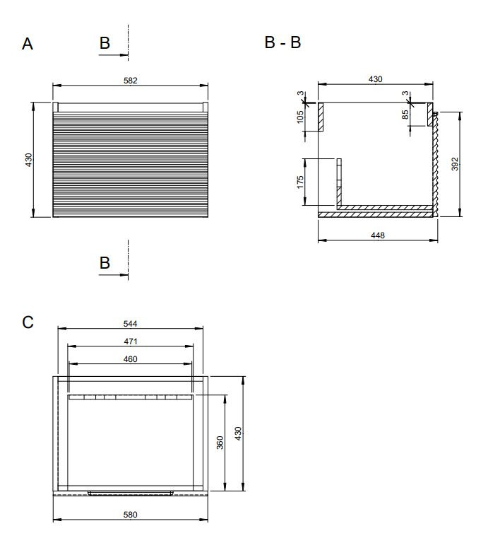 - Meuble évier en céramique 61,5x46,5x7cm VERSO60.