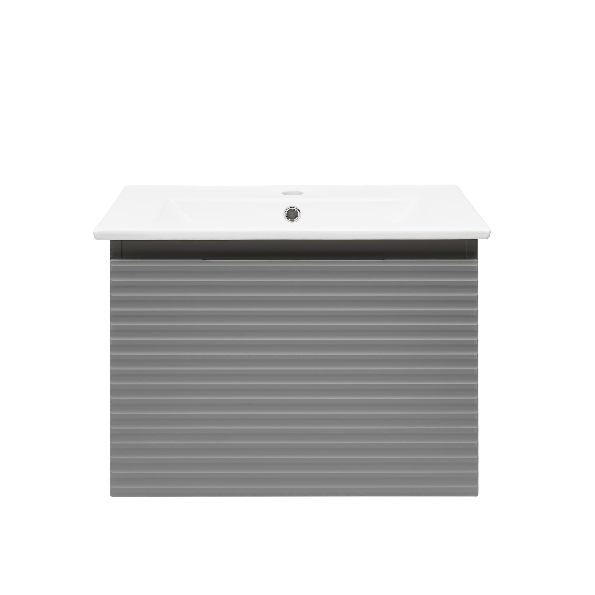 Naturel Meuble et vasque de salle de bain strié Naturel Savona 58x43x44,8 cm gris mat (SAVONA60GM)