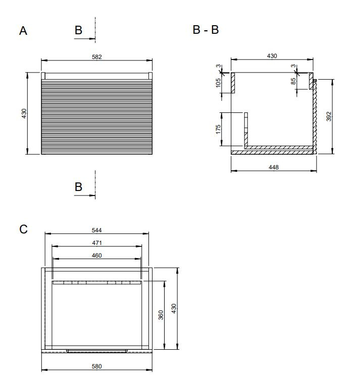 La teinte grise mate et le motif strié de ce meuble de salle de bain rehaussent l'esthétique de votre espace d'eau.