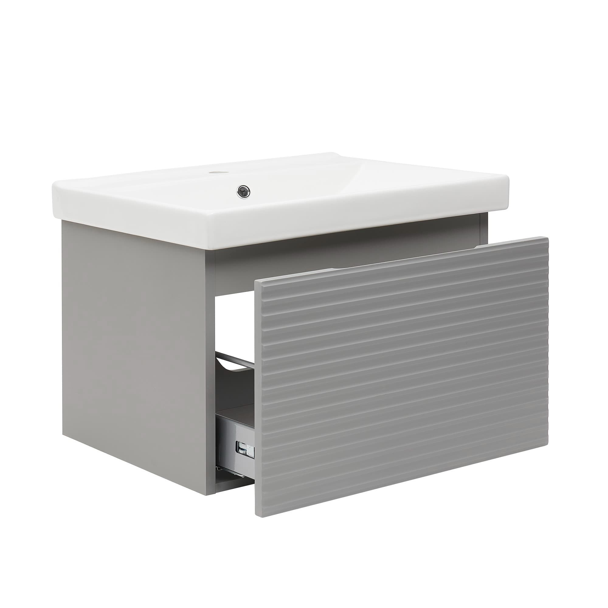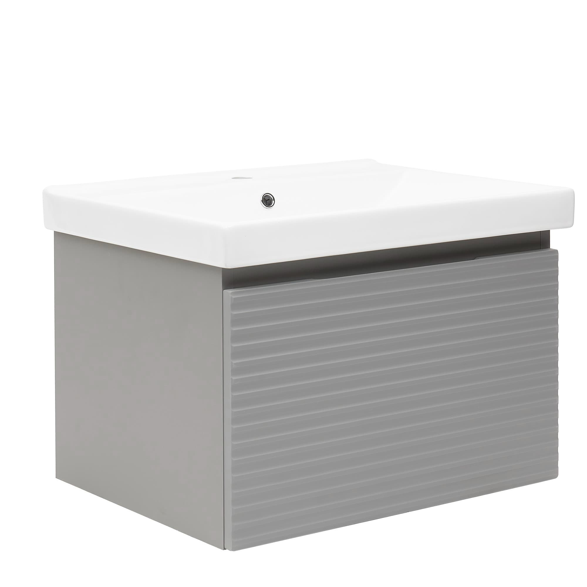 Meuble de salle de bain suspendu avec lavabo en céramique de couleur grise avec surface mate, mesurant 78x43x44,8 cm. Surface stratifiée.